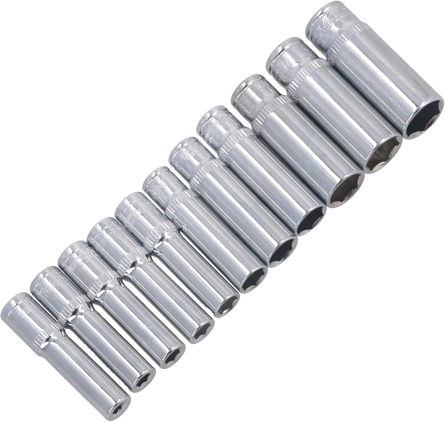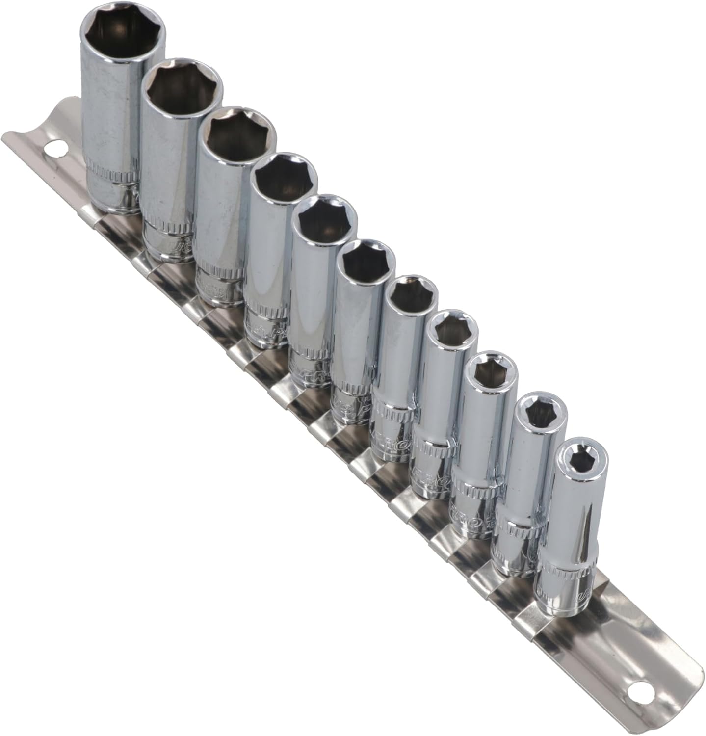 Professional tool for commercial or occasional use Manufactured from chrome vanadium steel for strength and durability Deep Metric MM Sockets 1/4 inch drive Metric sockets 6 sided / single hex sockets Double deep sockets so ideal for access into hard reach areas. Total length of the sockets 50mm Complete on a socket rail for easy storage and transportationSET INCLUDES THE FOLLOWING SIZES 4mm / 5mm / 5.5mm / 6mm / 7mm / 8mm / 9mm / 10mm / 11mm / 12mm and 13mm