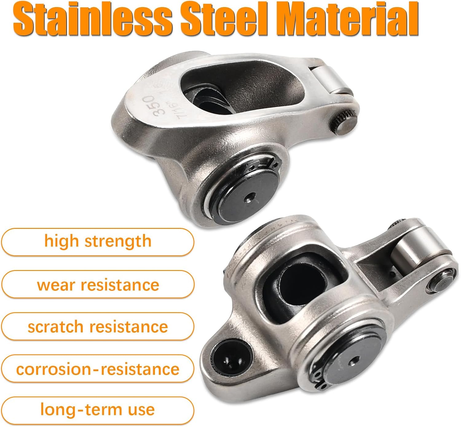 Information: Rocker Arm Mounting Style: Stud Rocker Arm Ratio: 1.5 Rocker Arm Style: Full Roller Stud Size: 7/16 in Shims Included: No Self-Aligning: No Rocker Arm Body Style: Standard Rocker Arm Nut Style: Polylock Rocker Arm Material: Stainless Steel Rocker Arm Finish: Natural Quantity: 16 x Roller Rocker Arms + 16 x Studs Application: Chevy Small Block Gen I 262 (1975-76), 265 (1955-57), 267 (1979-82), 283 (1957-67), 302 (1967-68), 305 (1976-86), 307 (1968-73), 327 (1962-69), 350 (1967-86), 400 (1970-80)