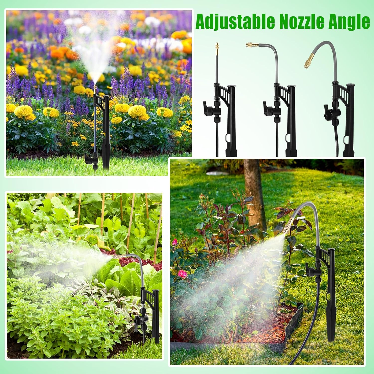 15 Sets 360° Adjustable Irrigation Misting Heads with Stake Micro Spray Emitters with 1/4" Irrigation Tubing on Riser Stake,Automatic Atomizing Sprinkler Stake Assembly for Garden Watering System