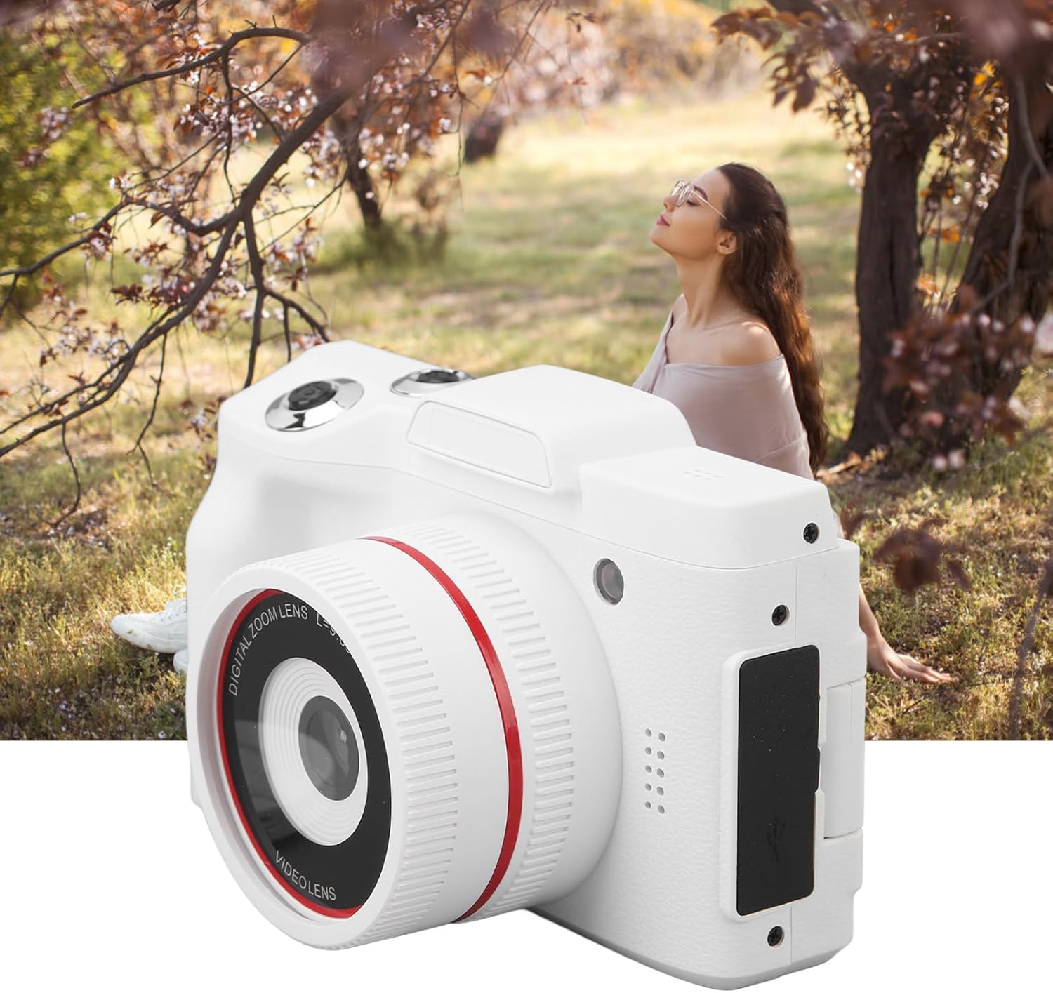 Spec:Item Type: Digital CameraMaterial: ABSFile Format: JPG.MP4Image Resolution: 16M ( Maximum )Video Resolution: 1080P, 720P, VGAMaximum Frame Rate: 30fpsImage Ratio: 16:9Lens Size: Zoom Magnification: 16X Digital ZoomLight Frequency: 60HZ, 50HZWhite Balance: Automatic, ManualAperture: F/2.2Focal Length: Approx. f=3.37mm/0.13inAuto Focus: SupportLens Expansion: Not SupportedBattery Type: 2 x AAA Dry Batteries ( Shipped Without Batteries )Storage Support: Support Up To 32G Standard SD Card (Memory Card Not Included)Connection: USB Connection: Not SupportedComplementary Light: SupportHot Shoe Expansion: Not SupportedDisplay Screen: 2.4 InchCharging Power: 5V1AUSB Support: 2.0Bottom Connector: 1/4 Inch Screw HolePackage List:1 x Digital Camera1 x Lens ( Installed )1 x Data Cable1 x ManualHow To Use:After inserting the memory card and battery, press the power on for 3s to turn on the machine, you can choose the mode by the knob, press the shutter on the front to start taking pictures or video recording, and the zoom in and zoom out buttons on the right side of the display can control the magnification of the zoom.