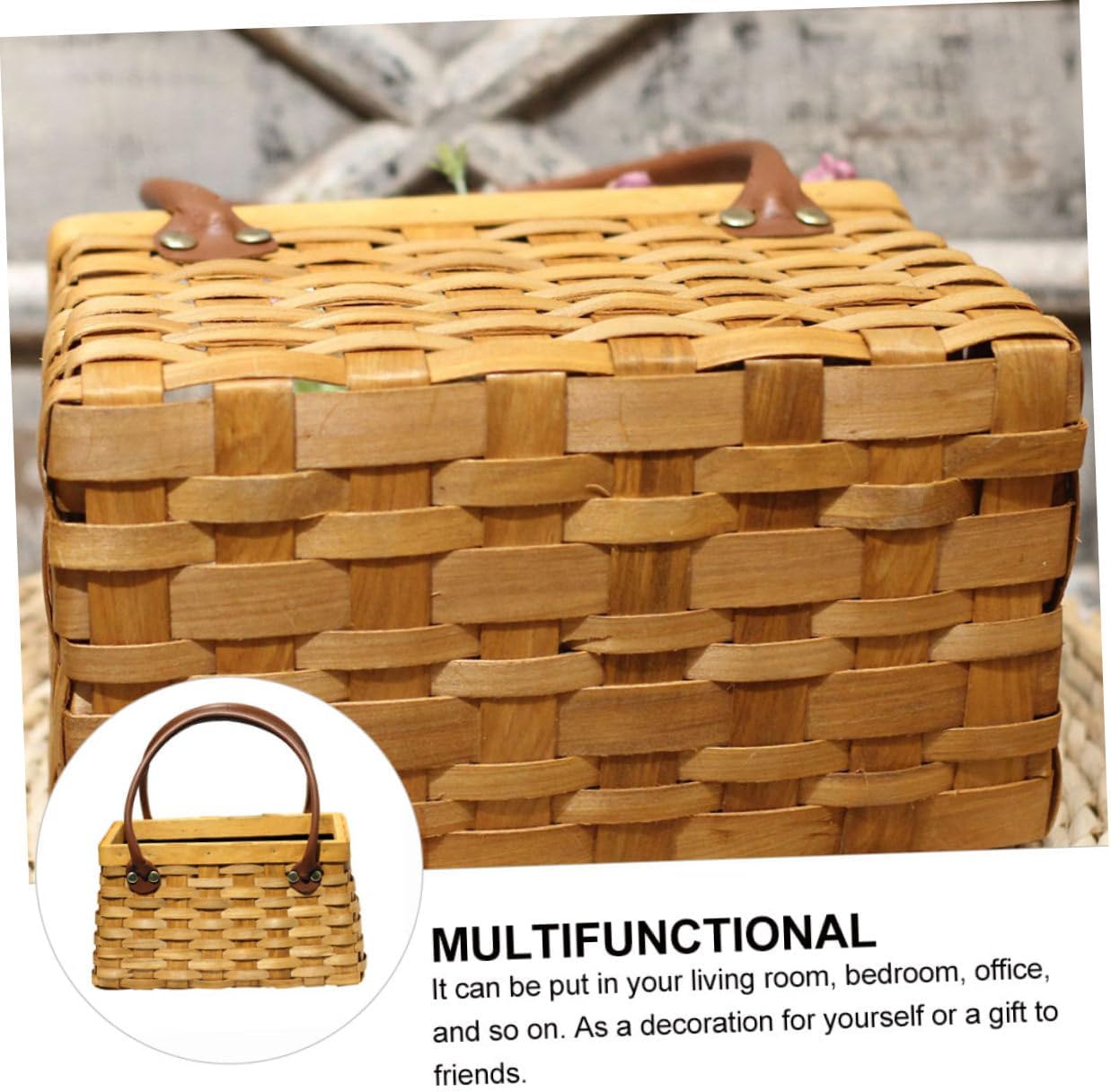 Package List 2 x Basket Characteristics -Material: Wood Hand-woven Basket -Size: 23.50X14.00X13.00cm/9.24X5.50X5.11in Portable Basket -Color: Khaki Wedding Flower Basket - It can store both flowers and dried flowers and some other decoration grass Fruit Basket. - Multi-functional storage, it is not only a rural stand, but also a simple storage for placing sundries, lotions, toiletries, etc Woven Flowerpot. - It can be put in your room, bedroom, office, and so on. As a decoration for yourself or a present to friends Woven Flower Basket. - Made of nice material, it is a and alternative Flower Arrangement Basket. - Woven design, more and attractive, which add a feeling of nature in the house Flower Container.Goods DescriptionPhoto Prop Made with material, so this product is and you can use it for a long time.Flower Basket This product is a woven flower basket, it looks very beautiful.Flower Container Suitable for home furnishings, gardening, home gardening, Christmas decoration, present packaging, souvenirs, storage of dried fruit snacks, wedding flower baskets, etc