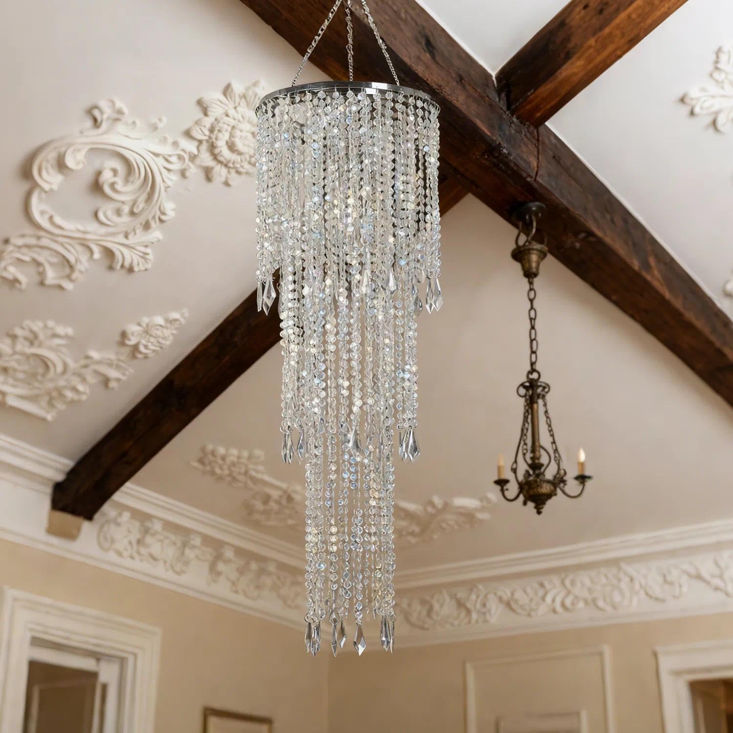 this splendid chandelier will give you a truly heavenly experience. Four majestic tiers of countless crystal beads with multifaceted surface cascade enticingly, grabbing the attention and admiration of beholders. With this glam gem dangling mystically all the way down from your ceilings to the tables or stage, the effect will be of pure divine sophistication.