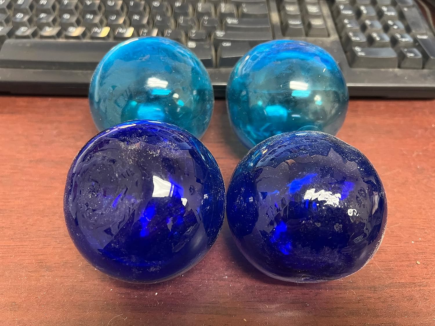 This is a set of 3" glass buoy floating balls. You will get all 4pieces in the colors shown. They look great displayed in the yard or inside the house and will float in a fountain or pool.
