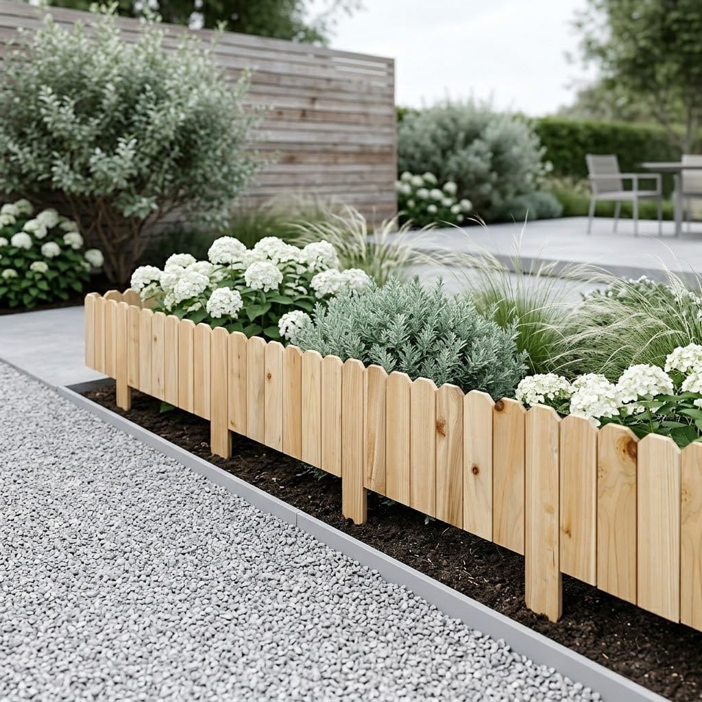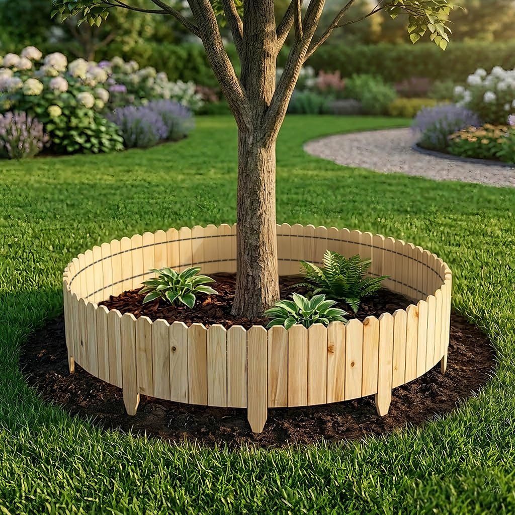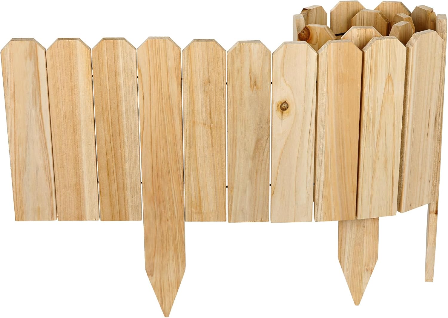 When a single section isn't enough to contain your garden's beauty, our 2-Pack Natural Wooden Garden Fencing offers the ideal expansion. Providing a generous 94 inches of total coverage, this garden border set is specifically curated for homeowners looking to define longer walkways, larger flower beds, or complex landscaping zones. The light, authentic wood grain radiates a refreshing natural aesthetic that complements everything from blooming roses to lush green shrubs, creating a high-end look for your outdoor space. Structural integrity meets ultimate versatility in this dual-pack landscape border edging. Each 47-inch wood garden fence border is constructed with individual 0.6-inch thick wooden pickets, expertly bound by a flexible metal wire core. This design allows the wood garden edging border to articulate and bend, giving you the freedom to create perfect circles, soft waves, or sharp rectangular borders. By placing the two units end-to-end, you can achieve a professional, uninterrupted wooden landscape edging that looks like a custom-built installation. We’ve designed this natural wood plant barrier edging to be as functional as it is beautiful. The sharpened spikes at the base mean you can skip the heavy digging and go straight to decorating. Standing at an 8-inch functional height, this picket fence border provides a clear visual boundary that keeps your mulch tidy and discourages small pets from entering your planting areas. Choose this value-driven easy install outdoor yard edging to bring organization and rustic charm to your entire landscape.