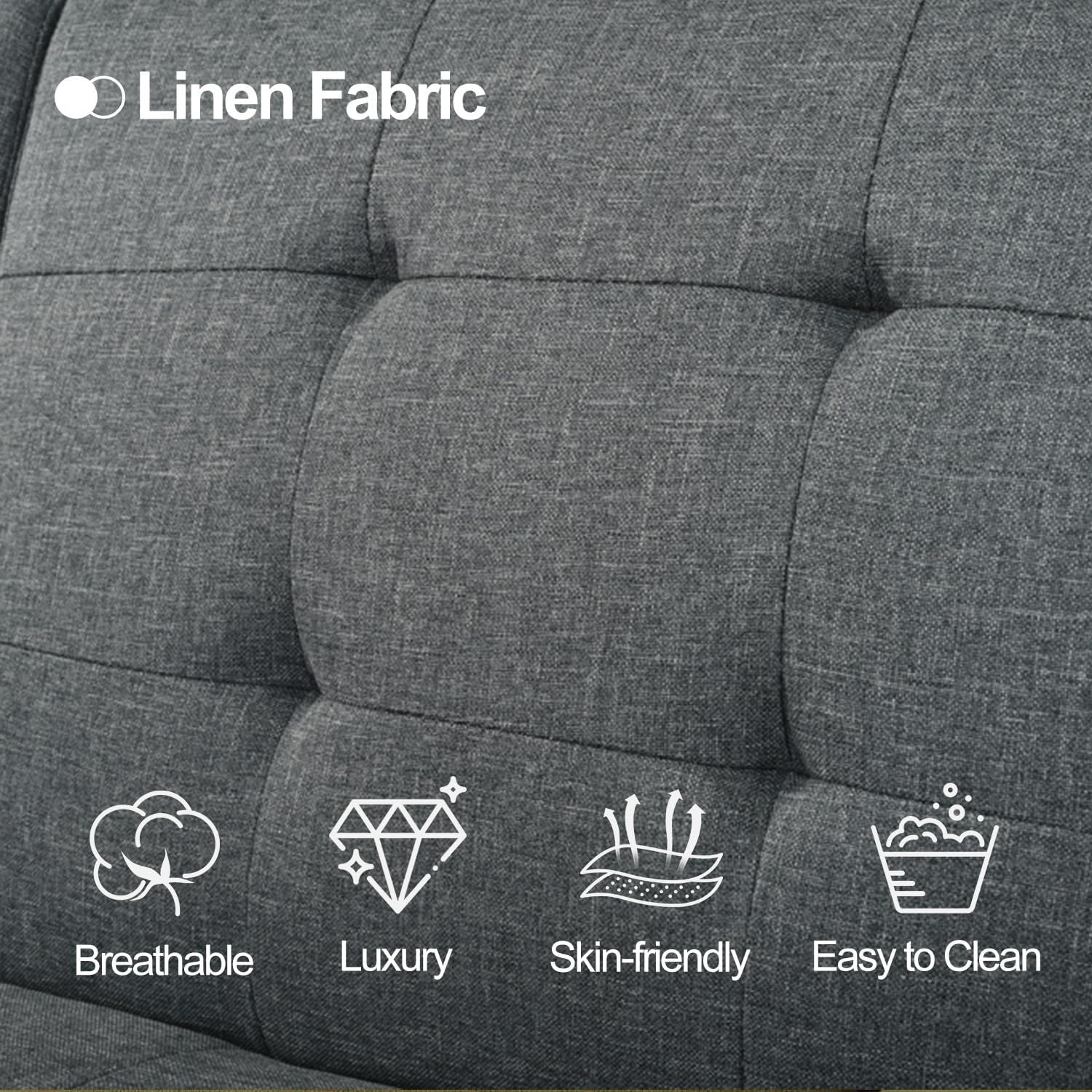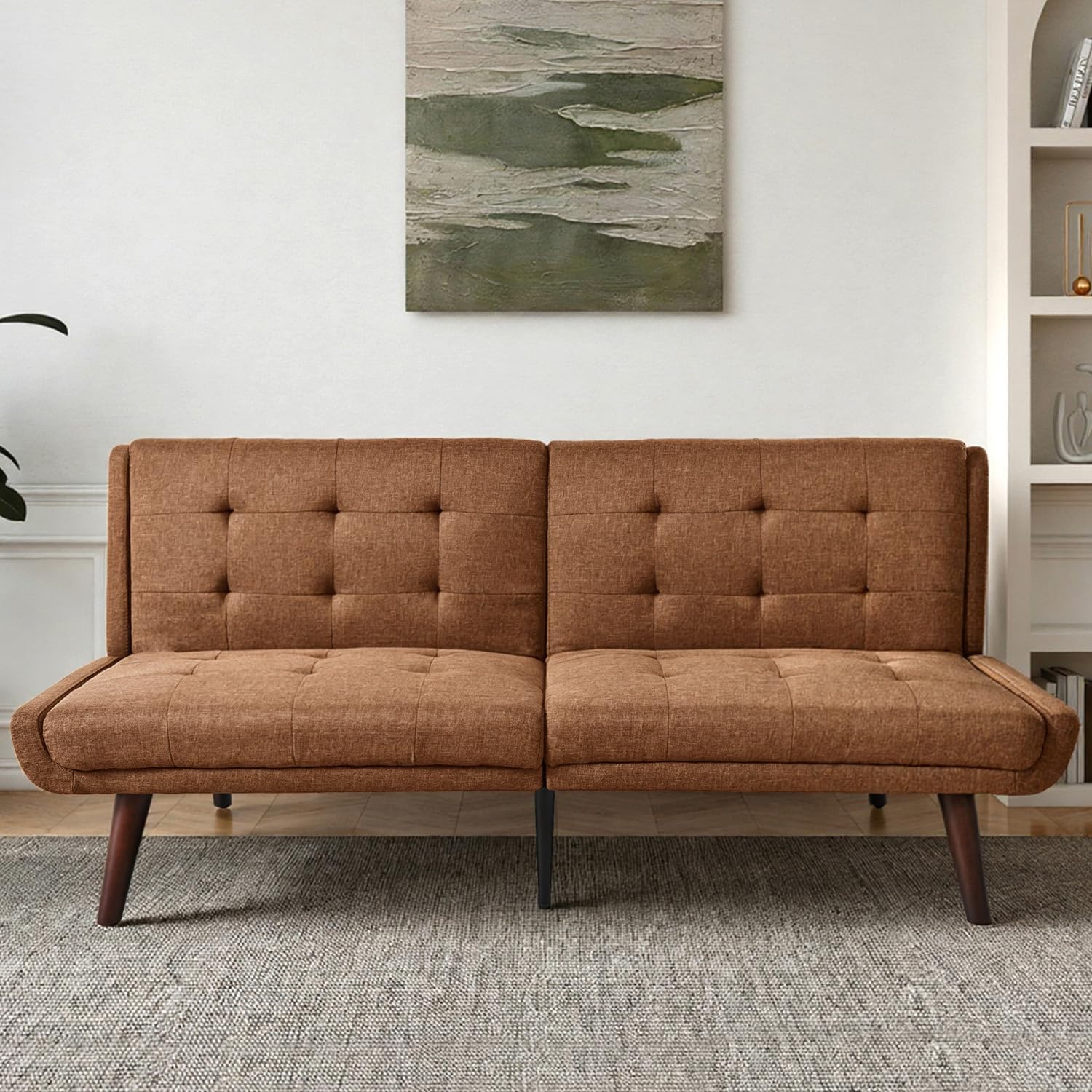 This versatile 3-in-1 loveseat sleeper functions as a comfortable sitting sofa, a relaxing recliner lounge thanks to its 5-position adjustable backrest, and a spacious guest bed in seconds. Upholstered in durable, skin-friendly fabric and filled with plush high-density foam, this upholstered small couch delivers cloud-like comfort and robust support. Built with a sturdy metal and wood legs that supports up to 550 lbs, this modern futon couch with adjustable backrest combines sleek design with exceptional stability. Compact yet fully functional, this convertible love seat couch is perfect for living rooms, apartments, dorms, or offices—always ready to transform and host guests comfortably, making it the smart, stylish choice for flexible living