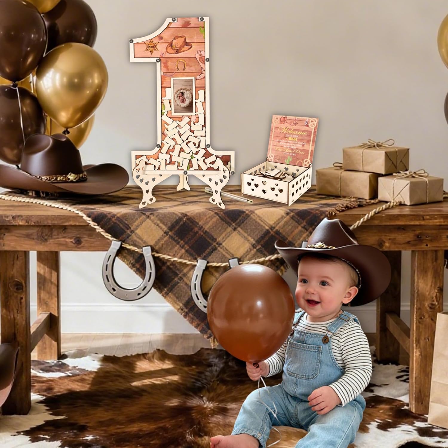 Specification: First Birthday Guest Book Alternative Wooden Guest Sign in Number 1 Shape Frame for First Birthday Decorations My 1st Rodeo Guestbook Sign with Photo Frame Baby Shower Reception Ceremony Party Decor with Drop Box 60pcs Boot Pieces Pen Western Cowboy Guest Book Alternative for One Bday 1st Anniversary First to Be Mom KeepsakeMaterial: Wooden, AcrylicSize: As the PicturesColor: Wood ColorPackage Include: (64pcs First Birthday Guest Book Alternatives)1 x Cowboy Number 1 Sign Frame1 x Cowboy Number 1 Sign Frame Stand1 x Signing Pen1 x Wooden Drop Box60 x Cowboy Boot Signing Pieces
