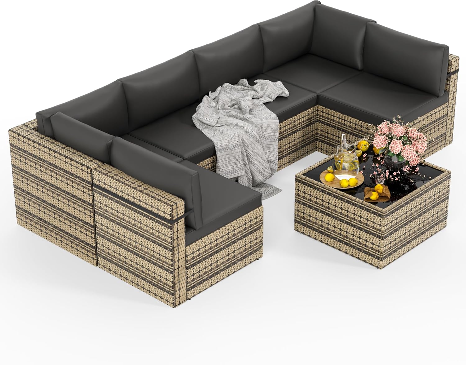 | Included Components | 2*corner chairs,4*armless chairs,1*glass coffee table |