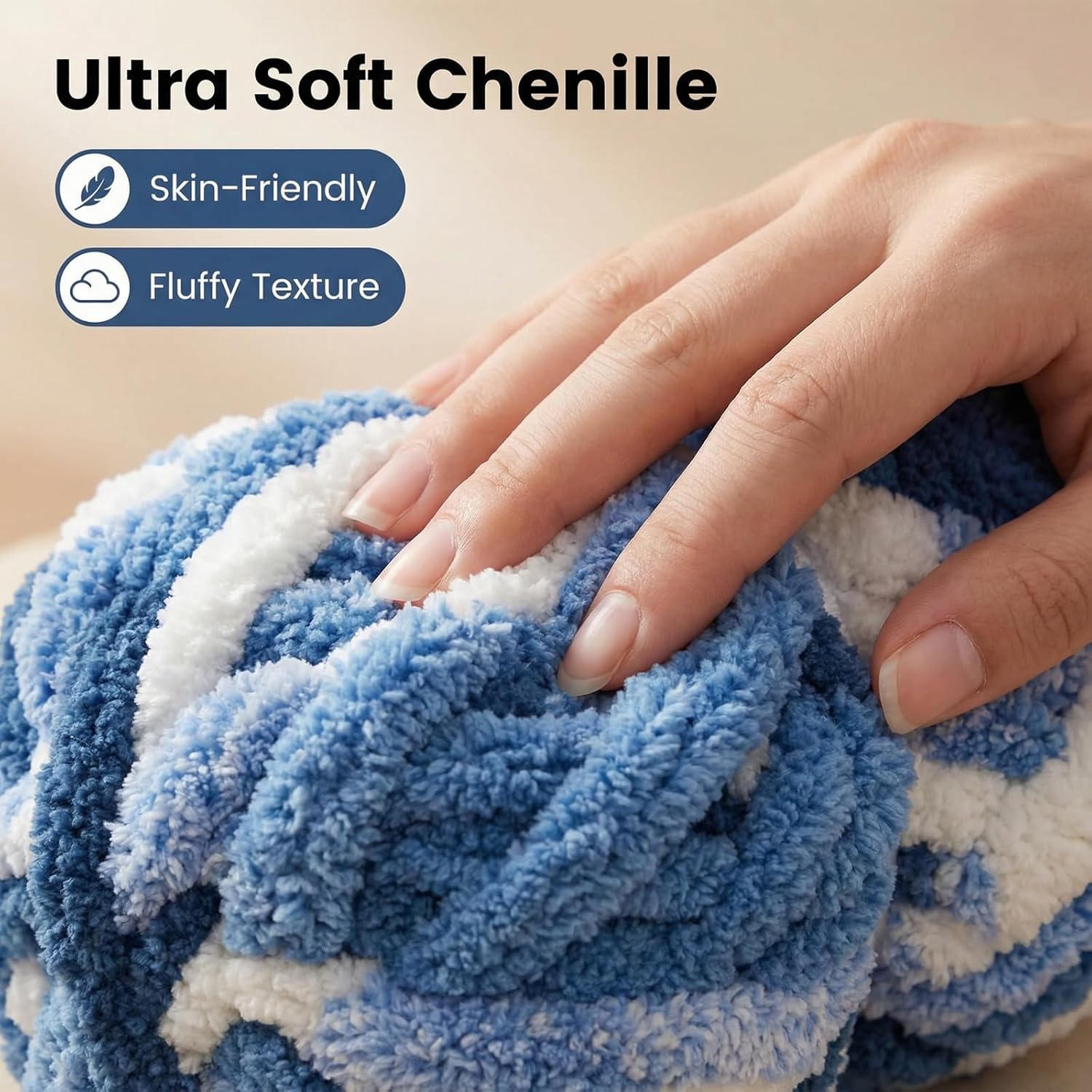 Chunky Yarn for Hand Knitting, Jumbo Big Thick Chenille Yarns for Crocheting, Bulky Fluffy Blanket Yarn