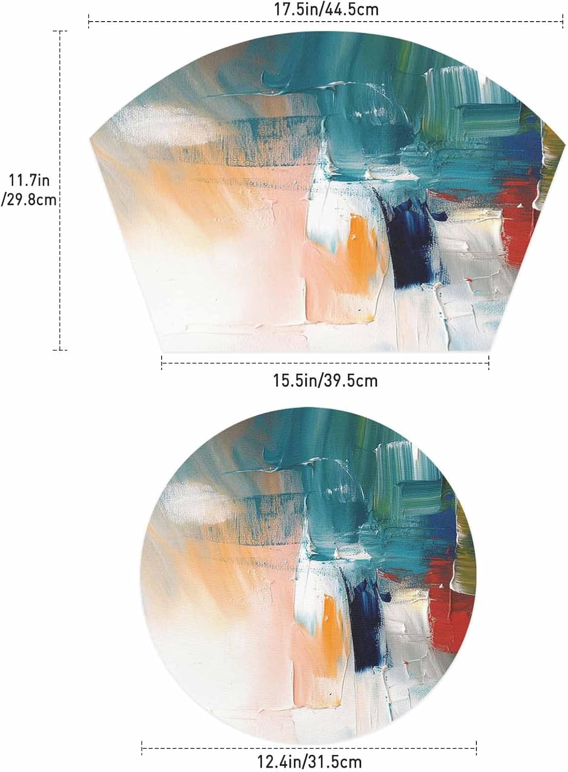 ✿Specification1.Material: High quality PVC.2.Package includes: 4 wedge placemats and 1 round placemat.3.Size: Wedge placemats 11.8 x 17.5inch(30 x 44.5cm)and centerpiece round placemats 12.6 x 12.6inch(32 x 32cm).✿Durable Placemats1.Non-slip placemats: Using placemats avoid plate from slipping around. Great for young children learning to scoop from there plates.2.Oil-proof table mats: Kitchen placemat protect your table from spills and foods that stain, and help with the mess while protecting your table.3.Heat insulation mats: Dining place mat are thick enough to insulate hot plates or bowls set on placemats round, avoid high temperature food damage to the table.4.Protected from scratches: Modern placemats protect your table from scratches from various cutlery or other items.✿Indoor & Outdoor Placemats- Round placemat are designed in a wedge shape, which is more suitable for round tables.- You can crop the woven placemats set of 4 to your liking to meet your various needs.- Placemats for round tables are suitable for various occasions such as kitchen, dining room, breakfast corner, cafe, restaurant, hotel, patio and many more.✿Premium Materials- Fabric placemats is breathable and dries quickly.- Circle placemats are durable and can be reused for years.- Even when the placemats washable is folded, table mats returns to its original shape without creases.✿Holiday GiftsPlacemats set of 4 are perfect gifts for family and friends at Christmas, Halloween, Thanksgiving, wedding, birthday, housewarming, Father's Day, Mother's Day, Valentine's Day and more.✿Washable Placemats- Placemats for round tables set of 4 are easy to rinse off with water.- For daily cleaning, round table placemats can be wiped with a towel or sponge.