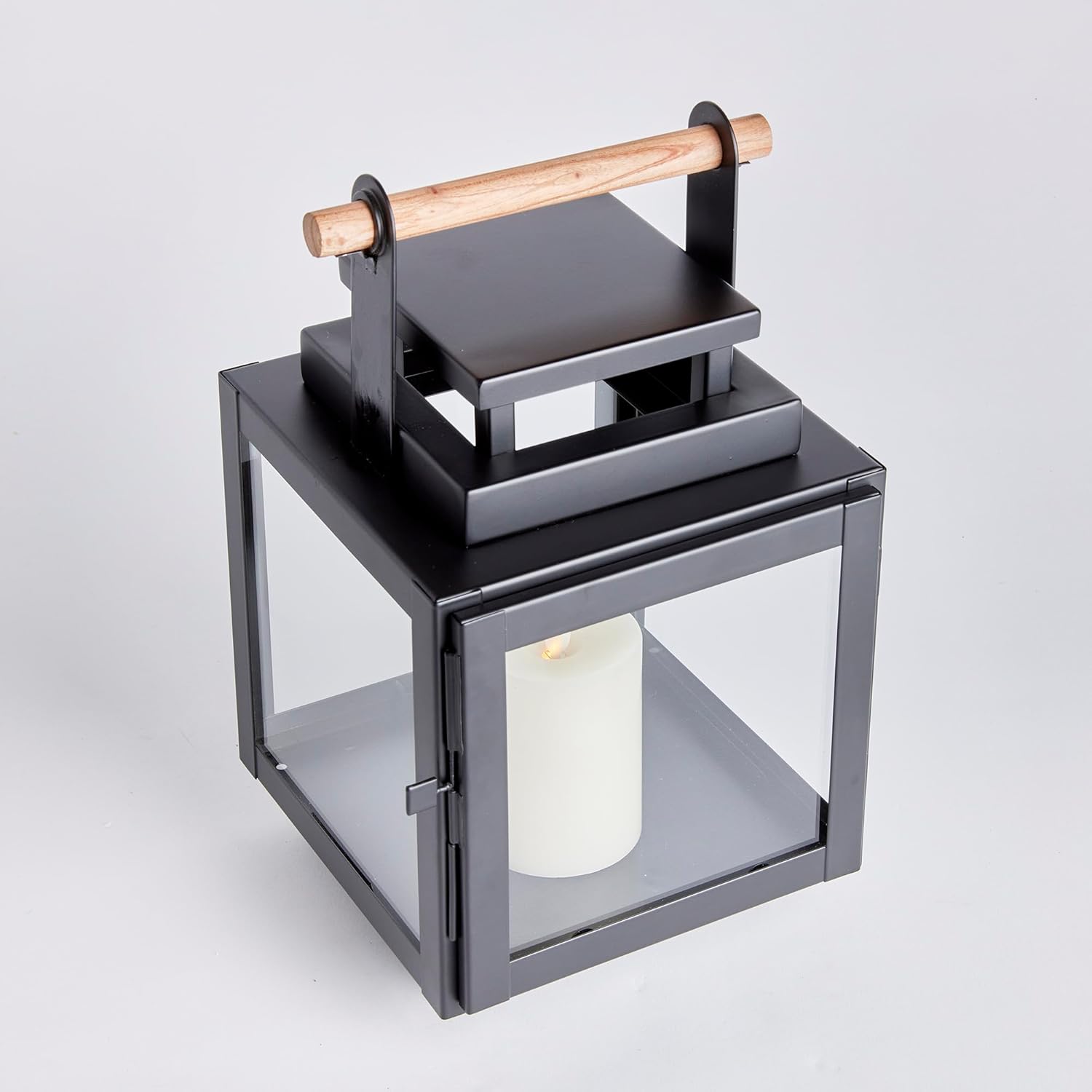 With a teak handle, wide glass panes and tailored square profile, this outdoor lantern is a handsome look for patio, porch or lanai. An exclusive design you won't see anywhere else.