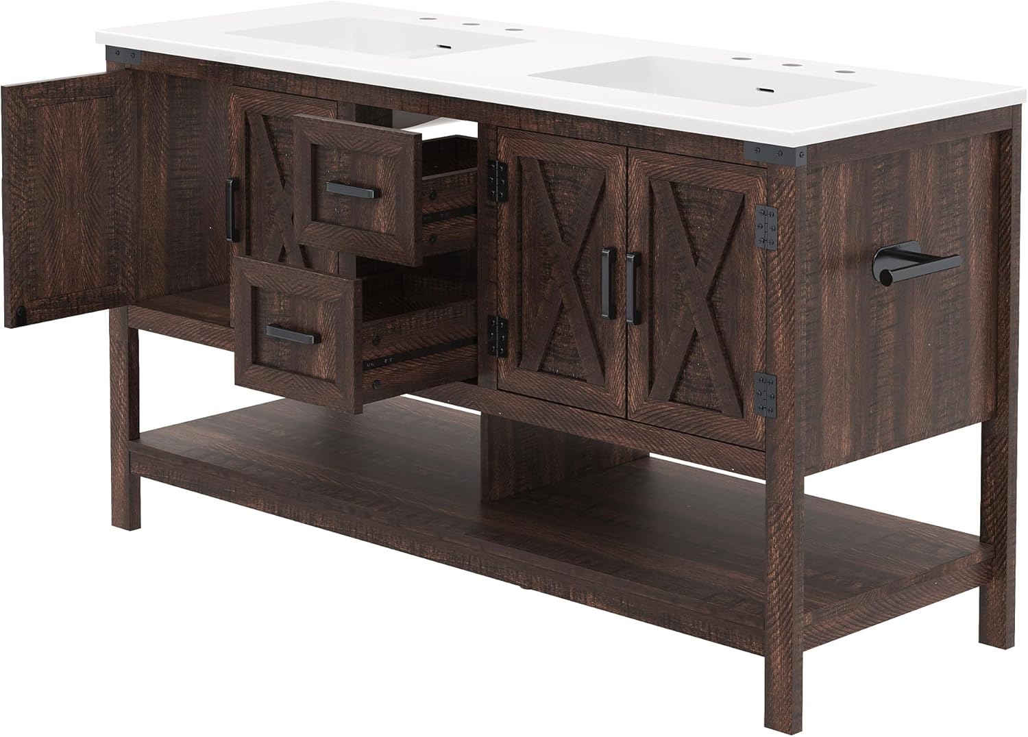 | Set Name | Rustic Brown Farmhouse Bathroom Vanity Set with Double Sink and Storage |