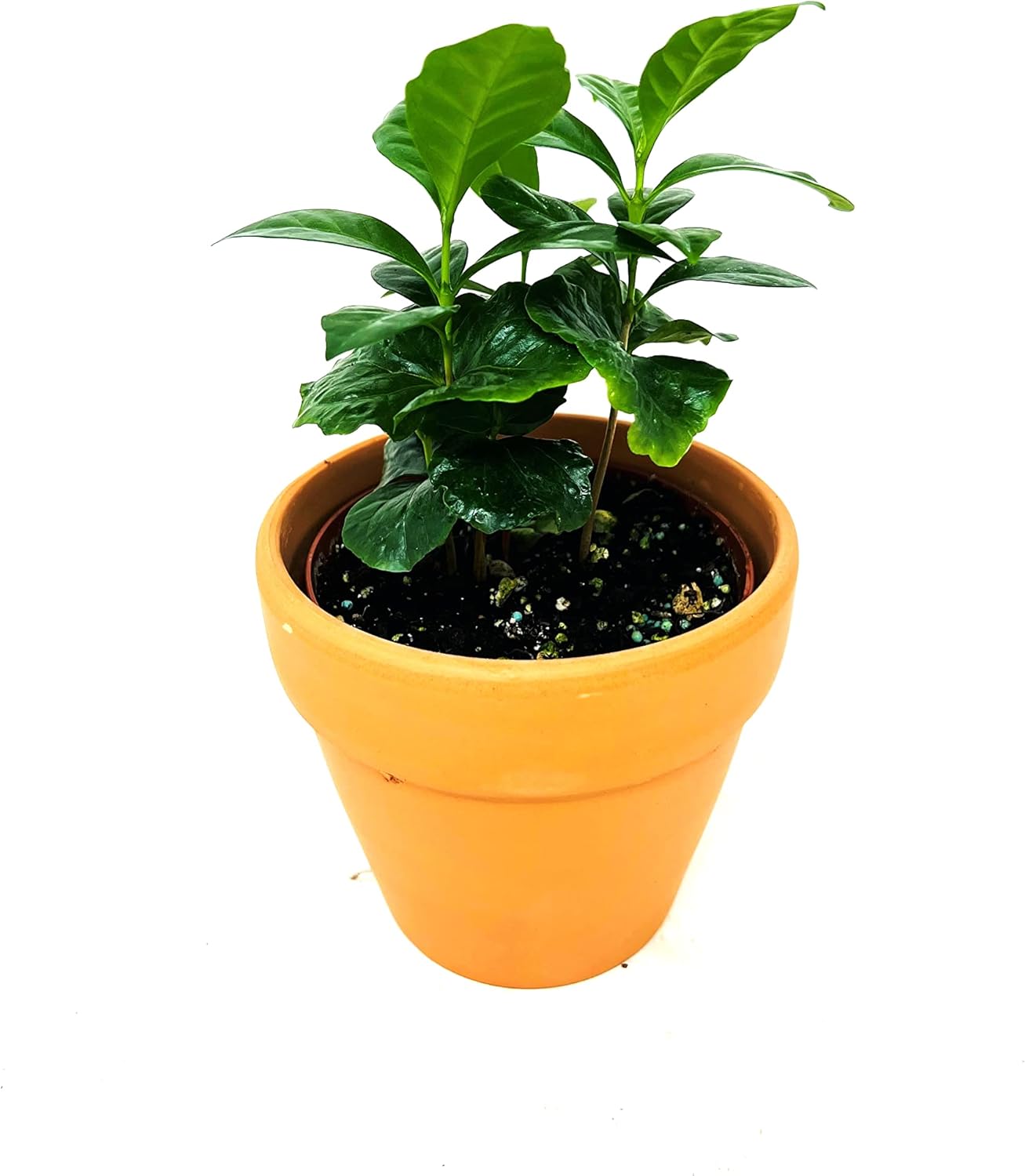 The coffee plant is an attractive little specimen with glossy green leaves and a compact growth habit. It makes a surprisingly good potted indoor plant. The best environment in which to grow coffee plants is to mimic its natural conditions found on a tropical, mid-elevation mountainside: plenty of water with good drainage, high humidity, relatively cool temperatures, and rich soil. water at least weekly to keep the soil moist. Coffee plants prefer dappled sunlight. The optimal average temperature range for coffee plants is a daytime temperature between 70 to 80 degrees and a nighttime temperature between 65 to 70 degrees. Mist daily to raise the humidity level, or place near a humidifier.