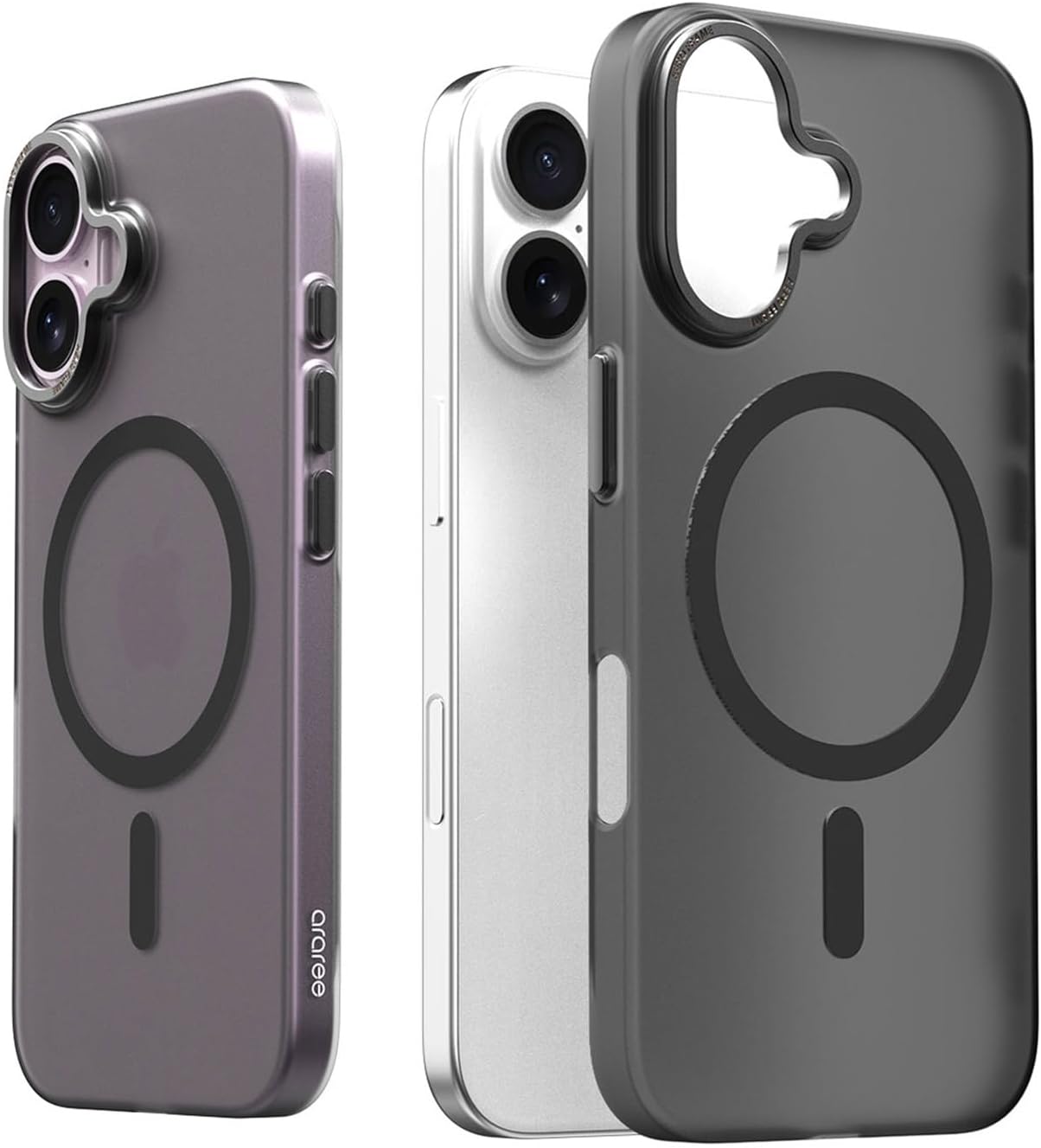 Araree AERO FRAME is a MagSafe compatible iPhone case that features a combination of high impact polycarbonate and metal. ● Heavy duty, impact resistant High quality polycarbonate used in bulletproof glass protects your iPhone from bumps and scratches Durable and long lasting. Stylish metal point The edge of the camera hole and button cover are made of metal, giving it a high level of protection while adding a sense of luxury. ● Excellent grip feeling SF coating provides a comfortable and non-slip grip. ● Exquisite curved design The round corners of the iPhone make your iPhone more beautiful and eye-catching. ● Soft and delicate colors The translucent frosted design gently complements the color of your smartphone and further enhances its beauty. ● MagSafe wireless charging Built-in strong magnet allows you to comfortably use MagSafe accessories ● Precision Design The charging port, speaker hole, and microphone have been designed precisely to match the iPhone specifications.