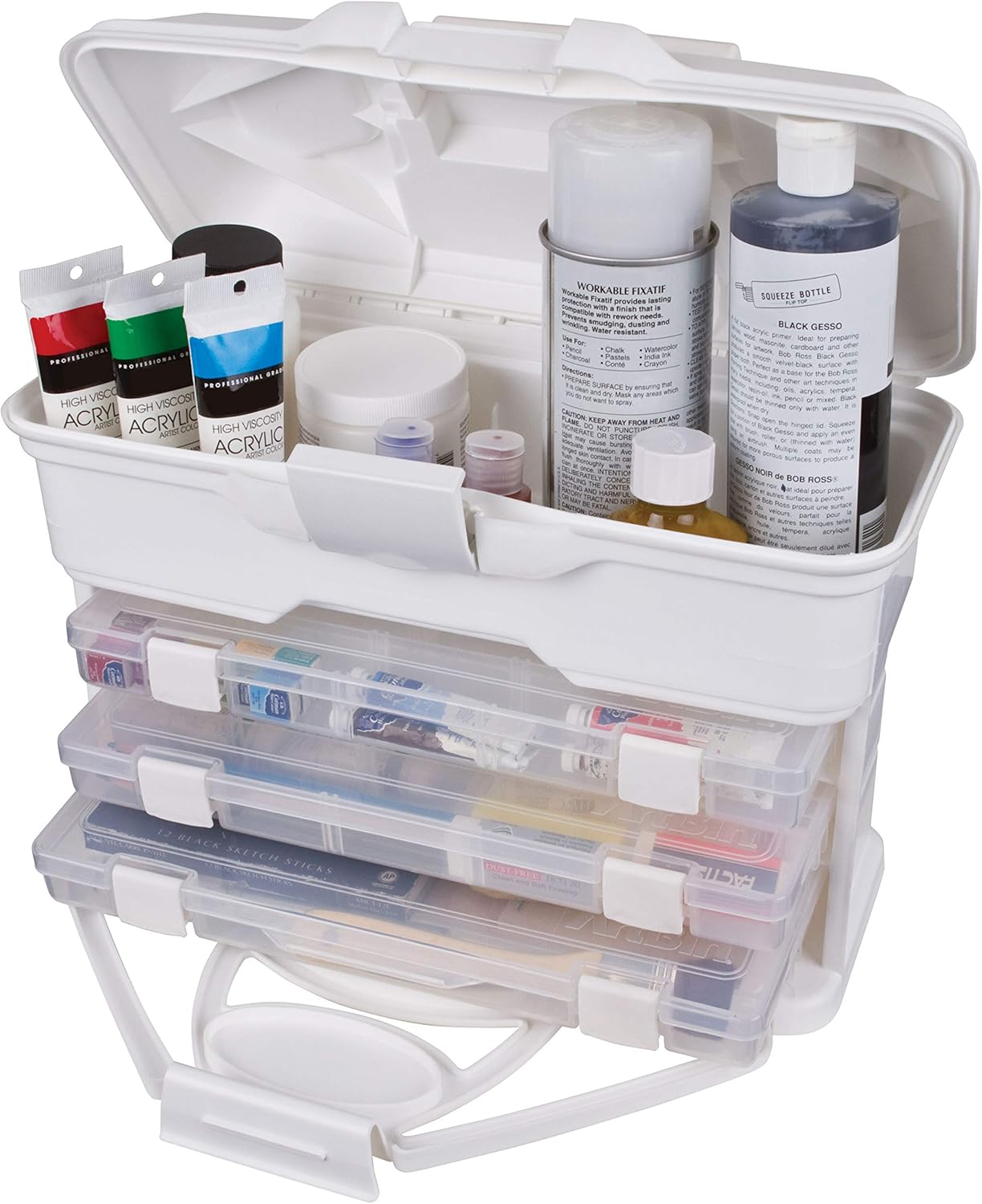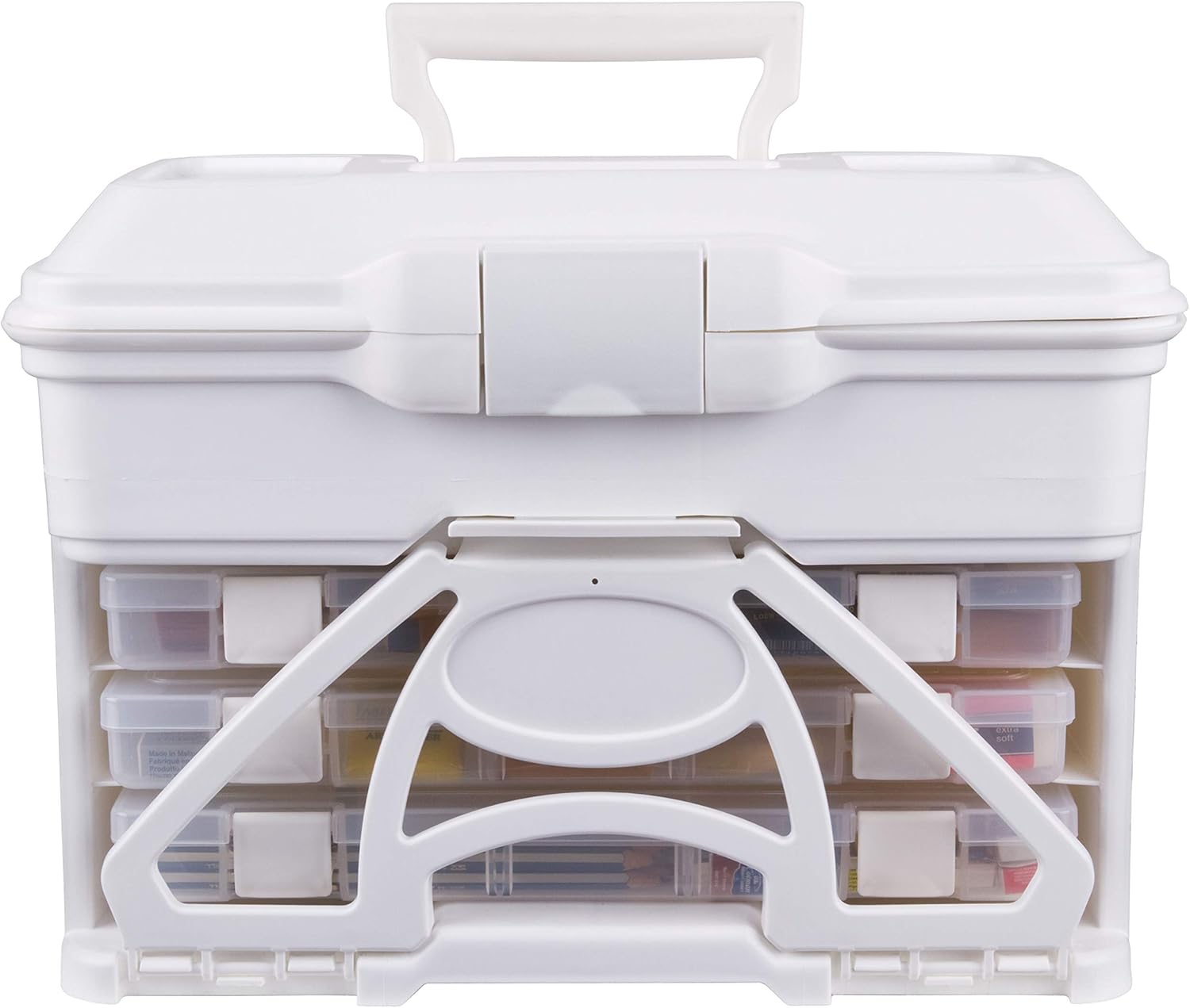 The ArtBin Solutions Cabinet is the perfect storage solution for your crafting needs This space efficient case holds three smaller storage cases to ensure that your crafting supplies are always organized just how you like them Comes with two 3900AB divided Solutions Boxes and one 3901 single compartment Solutions Box Additional storage space in the lid adds even more room to carry supplies Secure latches and handle allow for easy and comfortable transport