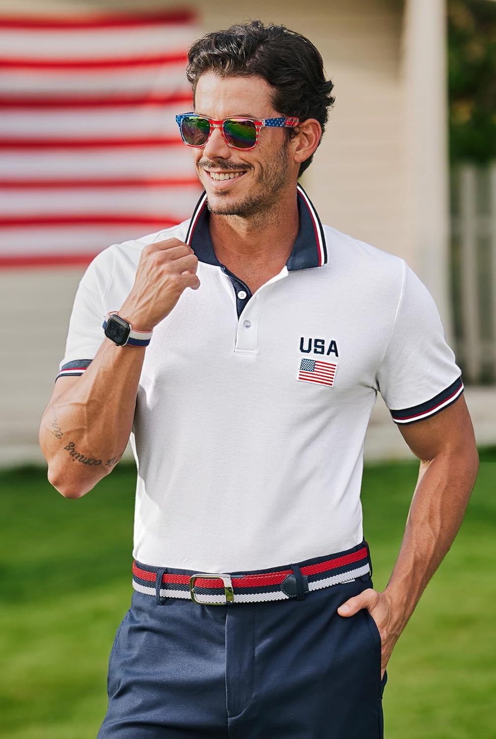| Color | White - Embroidered Usa Flag |