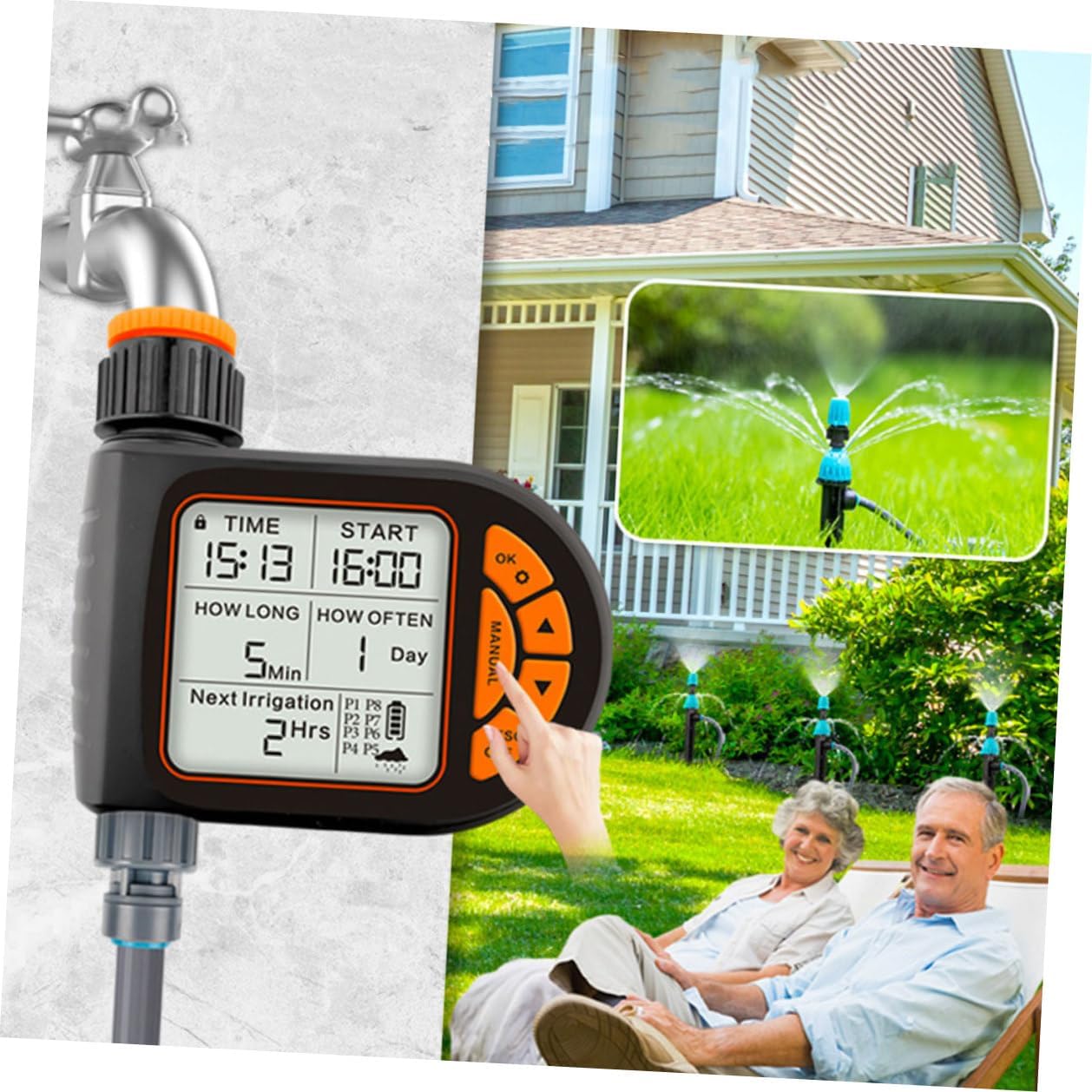 Package List 1 x watering timer Characteristics -Product Info:Automatic flower waterer -Size:13.00X12.00X4.50cm/5.11X4.72X1.77in smart irrigation controller -Color:Multi Gardening Watering Timer -Note:2 AA 1.5V batteries are not included. Suitable for water pressure of 1-8kg and water temperature 1-50°C intelligent watering timer -Flow: 500-17001/h irrigation timer -Material:ABS intelligent timed irrigation controller -Accurate water control ensures that the right amount of water is used, environmental protection and preventing water waste automatic watering timer. -With multiple functions, this device can cater to different watering needs, such as drip irrigation or sprinkler systems timer for irrigation. -Suitable for a variety of planting scenarios, this device can be used in gardens, balconies, and other outdoor spaces water irrigation timer. -Made from durable materials, this device is built to last and withstand various weather conditions drip irrigation timer. -The intelligent timing function of this device saves time and effort by allowing users to set specific watering schedules water timer for irrigation.Goods Descriptiontimer for irrigation You can set the watering time you need, which is perfect for home and garden use.automatic watering timer A large screen display makes it very convenient for you.Garden Irrigation Timer This is a gardening watering timer for your flower and plants.drip irrigation timer Made of quality material, it is durable for long time use