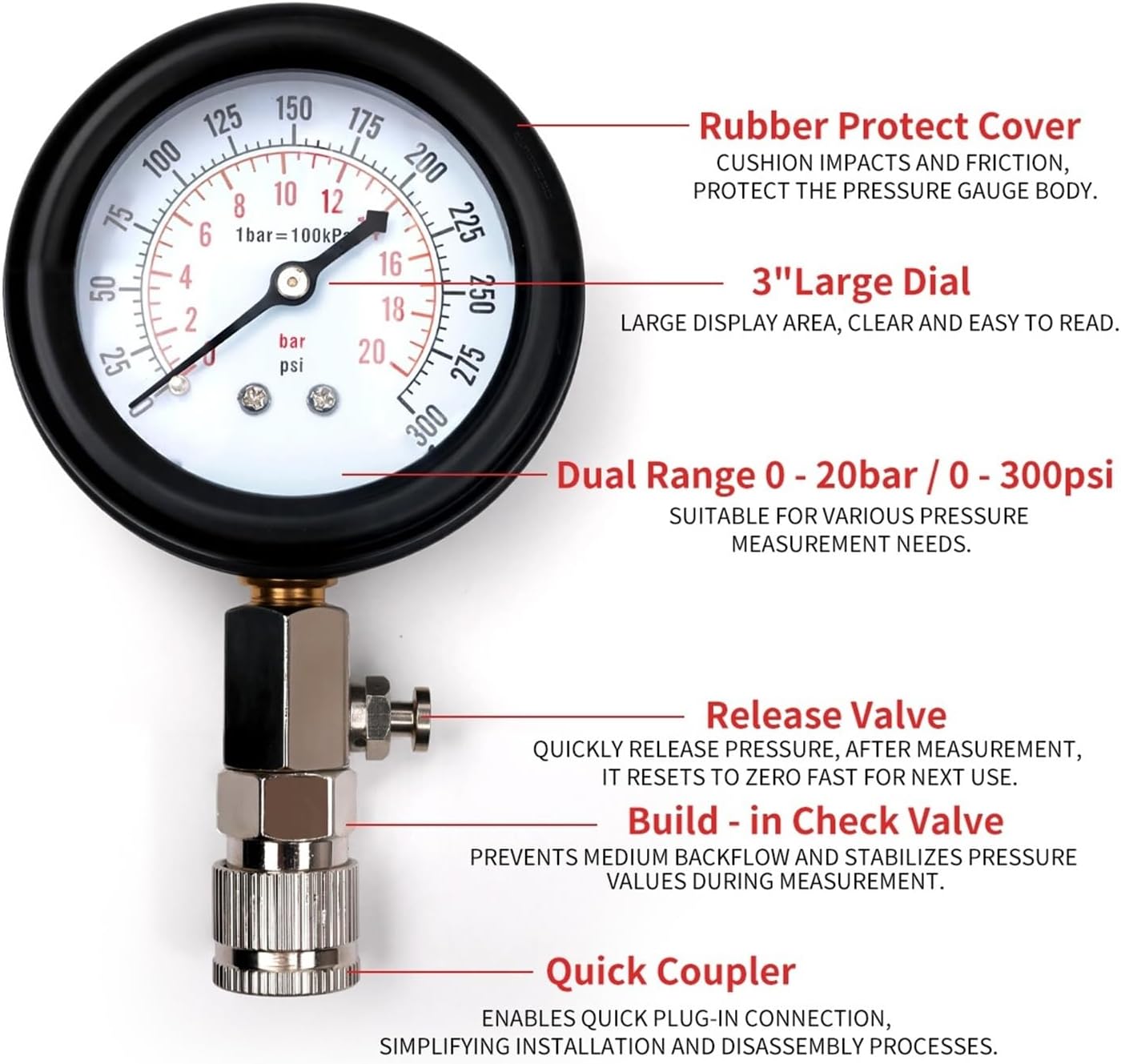 ==========Model Number : Cylinder Compressor GaugeMax Measuring Range : 200 PSI & AboveDisplay Type : AnalogDial Diameter : 2 - 3.9 InchesOrigin : Mainland ChinaWelcome to my shop. We are a reliable auto parts company. We can provide you with quality products and services. Please contact me if you don't understand anything before placing an order. We will give you a satisfactory answer and wish you a happy shopping