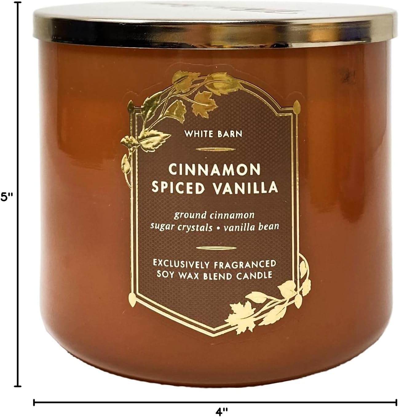 Bath & Body Works Cinnamon Spiced Vanilla 3-Wick Scented Candle with a Marbela Cherry On Top Bar Soap. INCLUDES: 14.5 oz / 411 g Scented Candle and a 4 oz Marbela Cherry On Top Bar Soap. Cinnamon Spiced Vanilla - What it smells like: a warm, spiced, creamy indulgence. Fragrance notes: fresh ground cinnamon, sugar crystals and Tahitian vanilla bean. What it does: delivers an amazing, room-filling fragrance experience. Marbela Cherry On Top Bar Soap - Grab a bowl, throw some bananas in the bottom with scoops of your favorite ice cream on top. Drizzle your ice cream with chocolate and caramel sauce and finally save the very best two ingredients for last. Whip cream dollops on top of the ice cream tower and add the cherries right on top. Notes of: Cherry, Vanilla, Strawberry.