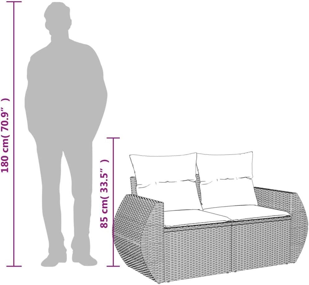 Qnhdfrt brings you a contemporary outdoor loveseat designed to elevate your living experience in gardens, patios, and balconies.Its modular setup adapts to different layouts, while the weather-resistant build handles sun and rain. Cushions feature easy-care covers for long-lasting freshness.Dimensions: 24.4 x 55.9 x 27.2 in (W x L x H)Weight: 348.3 lbsMaterial: Synthetic Poly Rattan, Powder-Coated Steel, PolyesterSeating Capacity: 2 peopleMaximum Weight: 485 lbsEnhance your outdoor moments with this practical and elegant sofa, for creating cozy social spaces.