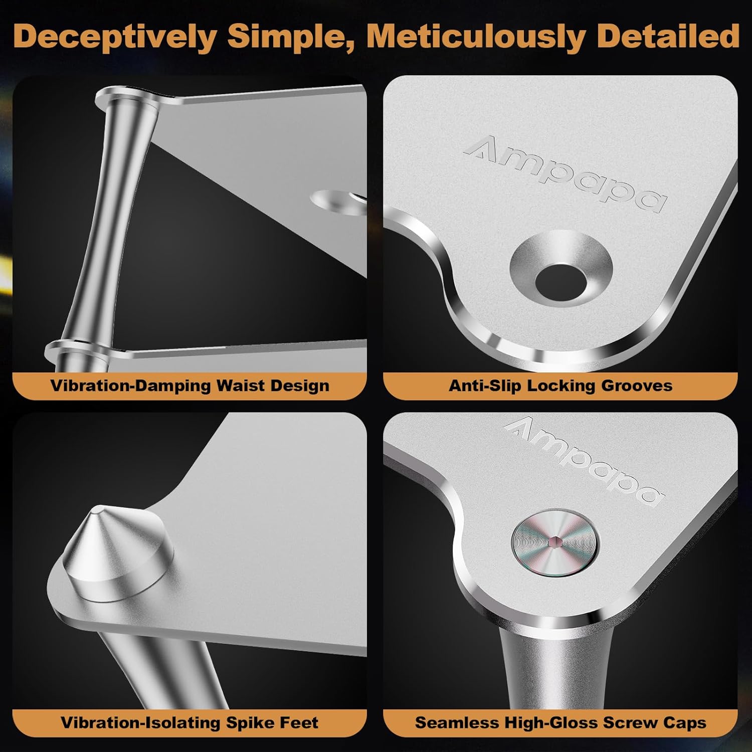 Q: What is the weight capacity of the BK1 stand? A: The BK1 is made of solid aluminum alloy with a reinforced structure. It can handle standard desktop audio setups with ease under normal use. Parameters Brand: Ampapa Model: BK1 Packing List 1* BK1