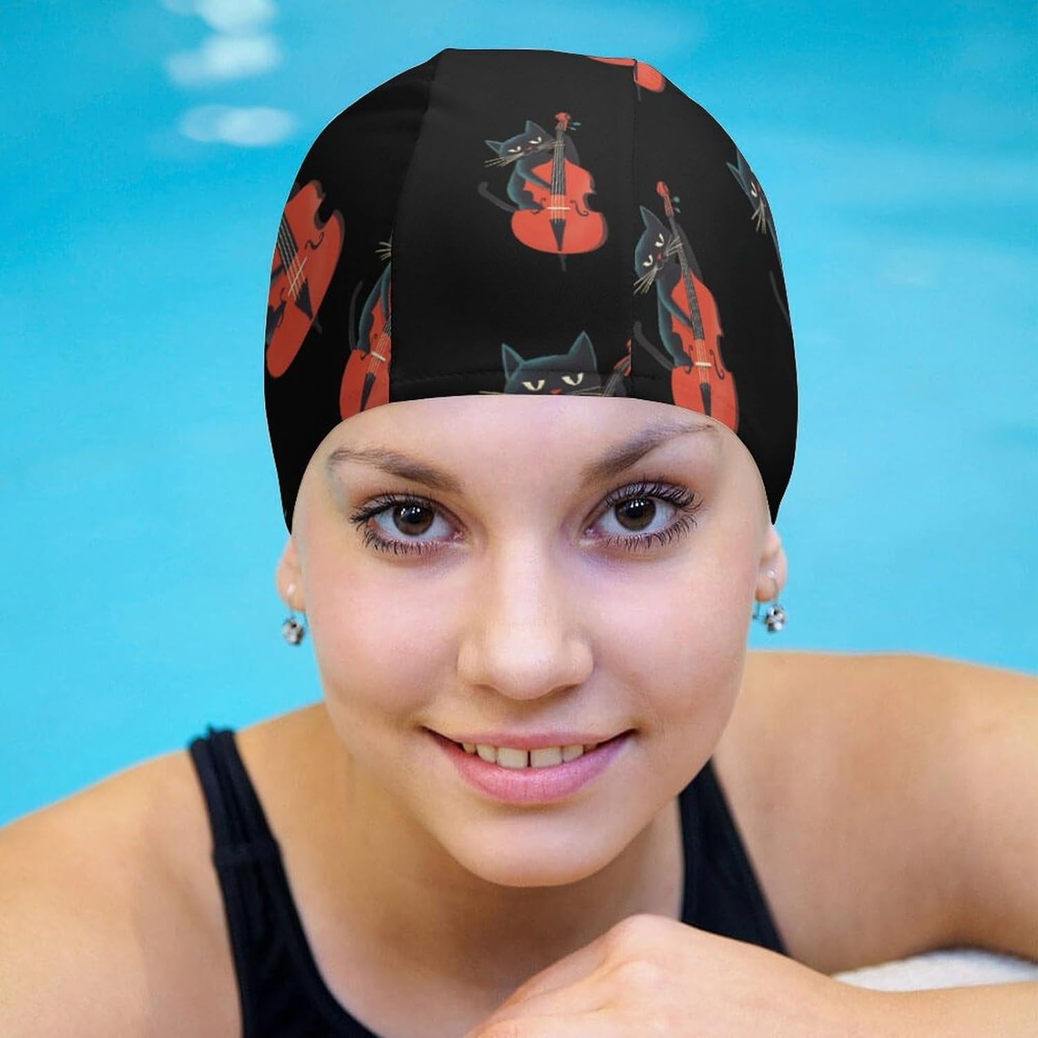 Stay comfortable and protected in the water with this women’s swim cap designed for all hair types, including short, medium, long, and curly hair. Made from stretchable polyester blend material, this swim cap provides a snug yet comfortable fit, ensuring your hair stays dry and shielded from chlorine and pool chemicals. The hydrodynamic design helps reduce drag, making it a great choice for both casual swimmers and competitive athletes