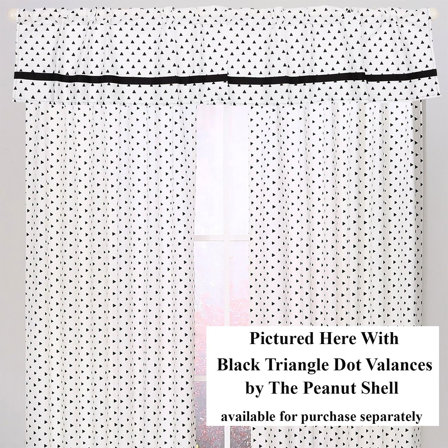 This pair of window panels from The Peanutshell features a contemporary triangle print in black and white with a blackout lining. The panels hang with a 3" rod pocket or back tabs and accommodate a rod up to 2.5" in diameter. Panels are sold as a pair and each measure 42" wide by 84" long.
