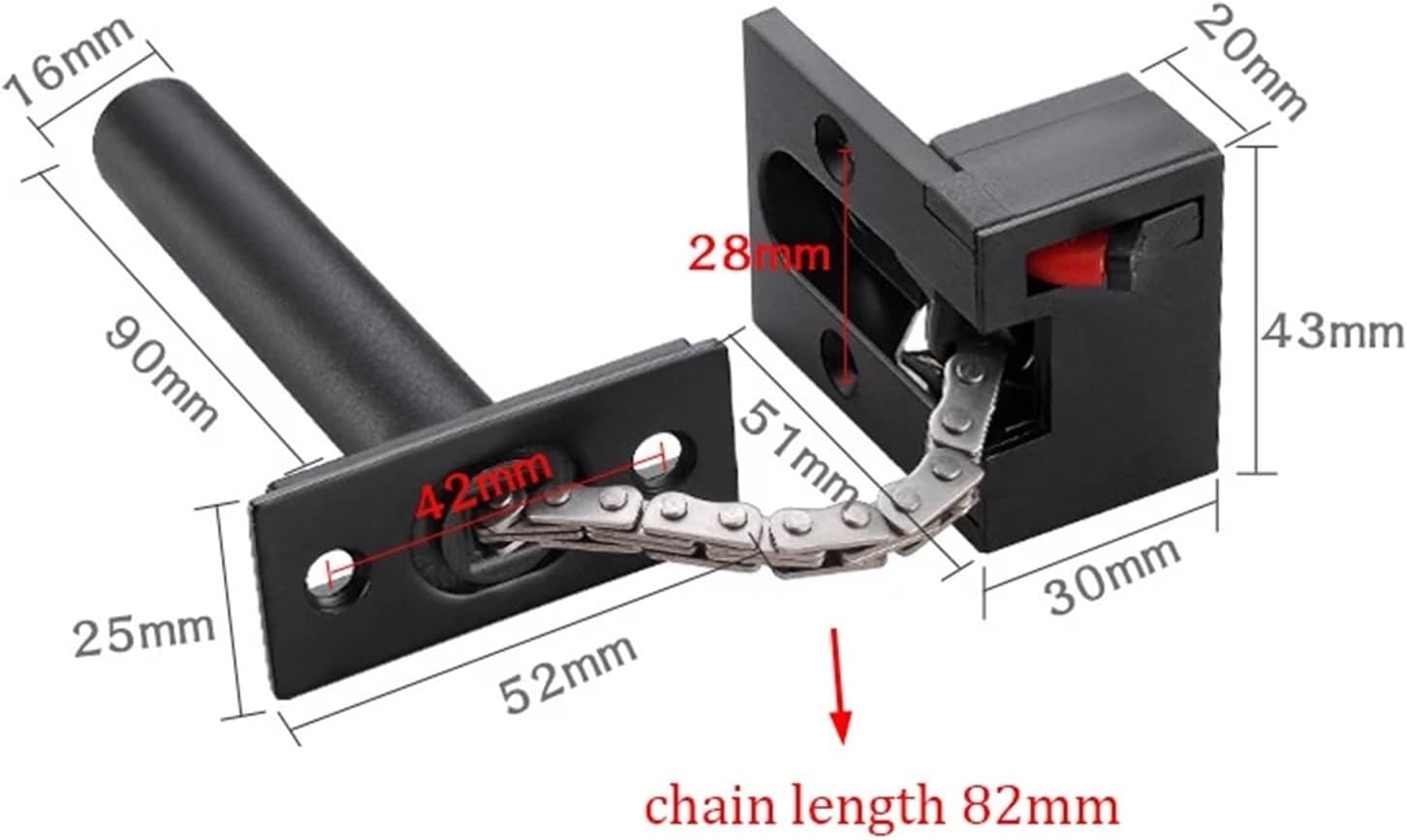 LatchBlack Zinc Alloy Hidden Door Chain Latch Door Lock Lock Hardware 1Pcs==========Surface Finishing : BrushedChain Length : 82mmMaterial : Zinc AlloyColor : Silver/Gold/Red Bronze/Green Bronze/Black