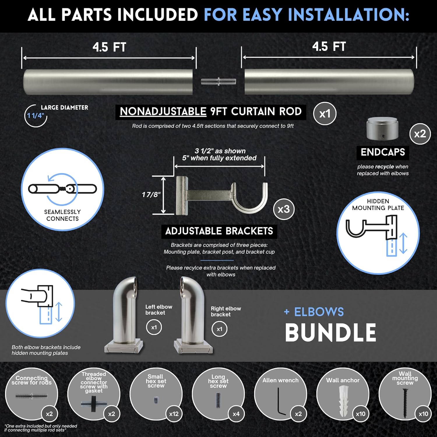 Our Signature Collection raises the bar for curtain rod quality; with sturdy 1 ¼ inch metal rods, premium brackets that hold up to 15 lbs each – well above the industry average – and stylish design that will improve the look of any home. Most adjustable telescopic curtain rods sag and slide; our strong, fixed length, non-adjustable premium quality rods can be connected to fit even the widest windows with no sagging and no unsightly seams. BlastHome used our many years of Window Covering experience with the largest upscale retail home stores to create our Signature Collection – stylishly designed & made with the highest quality materials but much more affordable