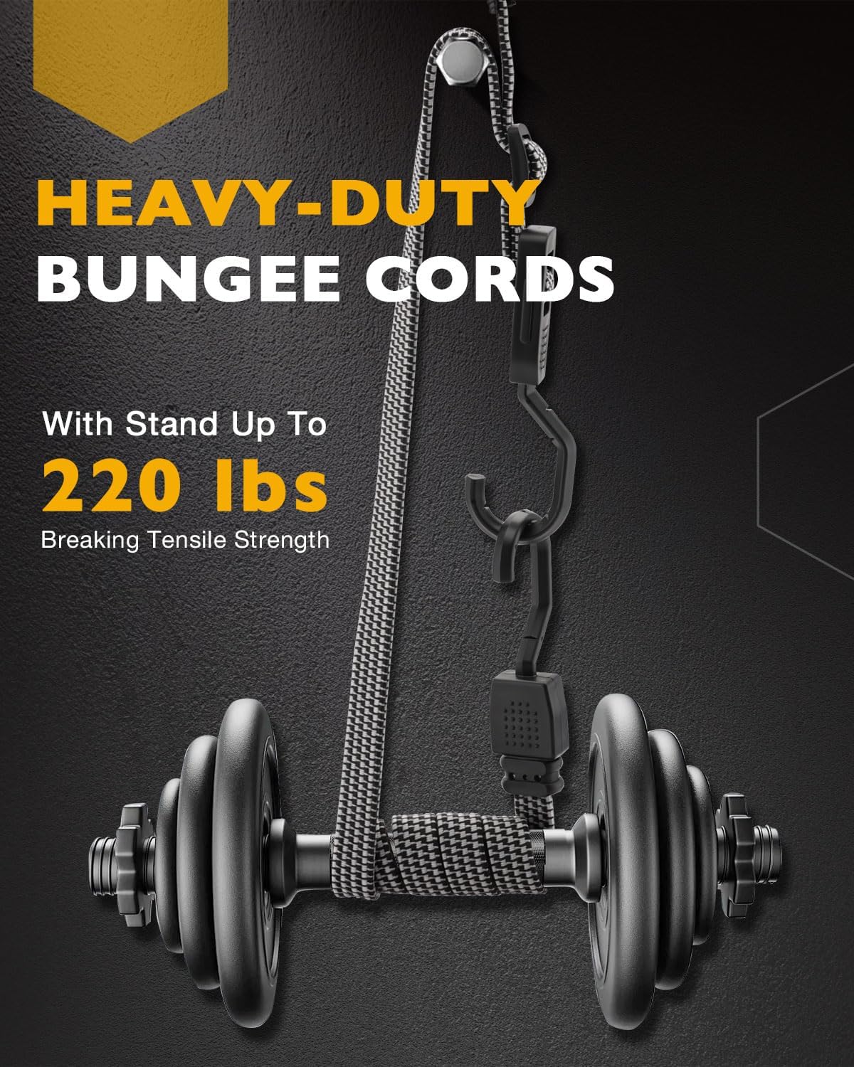 Packing List:12PCS x 40 Inch (100cm) Adjustable Portable Flat Bungee Cords with HooksCondition: NewElasticity: 2-2.5 timesCord Max Load: 220 lbsHook Max Breaking Strength: 132 lbsUsage & Scenarios:● Indoor & outdoor use● Secures heavy loads, such as car roofs, truck beds● Fits bicycles, bike racks, tents, tarps, trailers● Holds luggage, tools, camping gear steady● For canoeing, kayaking, clotheslinesTired of your gear shifting, sliding, or even falling off during transport? Whether it's luggage in the car, camping gear on the roof, or tools in the truck bed—loose items mean stress, damage, and extra stops to readjust. Our heavy-duty carabiner bungee cords fix that: strong elastic holds tight, adjustable length fits any load, and scratch-free double-headed hooks keep your stuff (and your vehicles) safe. No more wobbly cargo, no more worries—secure what matters, easily. Grab your set today!