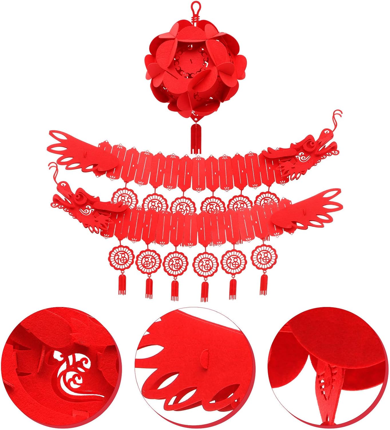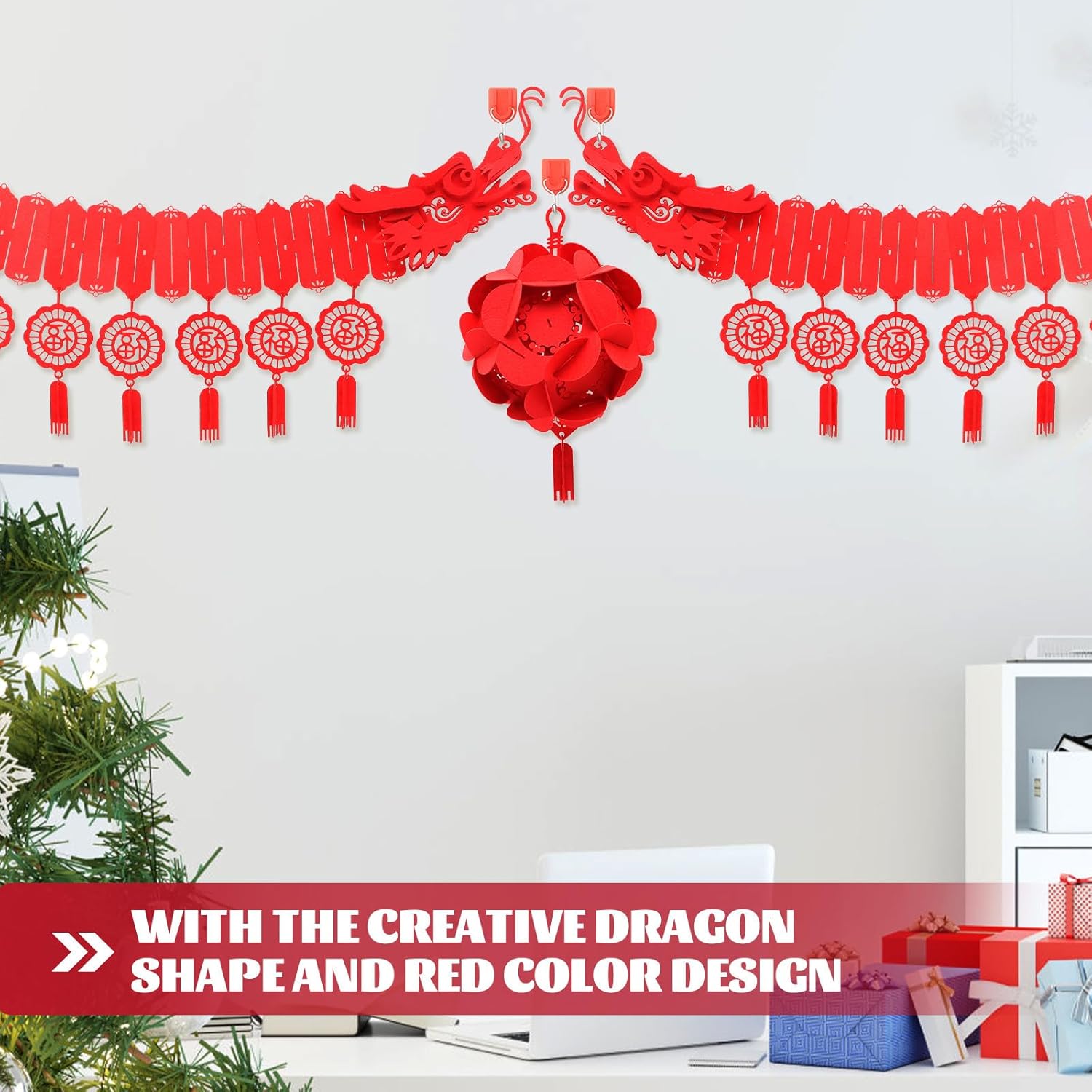 Package List 2 x Dragon Garlands 1 x Hanging Ornament Features -Color:Red -Product Info:Chinese dragon hanger decoration -Material:Non-woven fabric -Size:26.00X26.00X26.00cm/10.22X10.22X10.22in(Hanging Ornament) -Size:170.00X17.00X17.00cm/66.81X6.68X6.68in(Dragon Garlands) - With traditional Chinese New Year elements design, this dragon decor is perfect for hanging on the window or other places Spring Festival Scene Pendant. - You can also give your , friends and family as a , they will be happy for that Chinese Style Ornament. - Made of non-woven fabric material, it is of and , delicate and not easy to deform. - Widely used in shops, offices, hotels, restaurants, bars and anywhere else you want to decorate spring festival auspicious dragon. - Selected good non-woven fabric material for the pendant, which is not easy to deform or break.Goods InformationChinese Style New Year Pendant This delicate New Year hanging dragon decor will be a festive addition to your New Year party.chinese dragon figure The festive dragon ornament can be used to decorate the New Year party window, fireplace, door, wall, window or give it as a to your family and friends.lunar new year dragon decorations It will bring fun and festival atmosphere for you