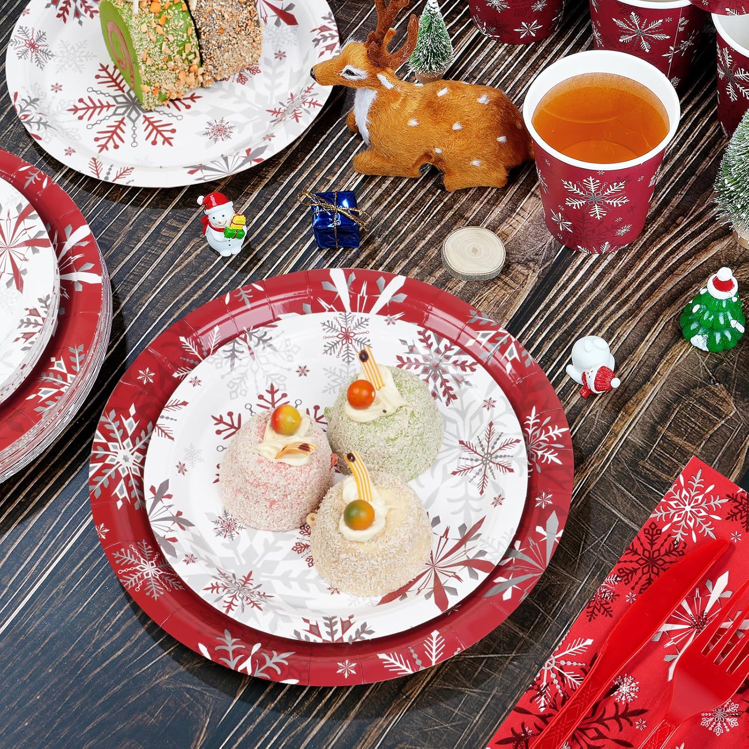 Winter Christmas Party Supplies Features: Winter Holiday Plates and Napkins Our Christmas snowflake party supplies feature red white and silver colors adorned with various snowflakes in different shapes to create a sense of depth. This exquisite combination is perfect for Christmas and winter gatherings and parties, adding a touch of sophistication to your event. Wide Applications: Our red snowflake party supplies are perfect for decorating various themed parties like Christmas, New Year, Winter and other parties. Our Christmas winter party supplies will meet all of your needs and create a festive atmosphere. Notes: Manual measurement, please allow slight errors in size. The color may have a slight difference due to different screen displays.