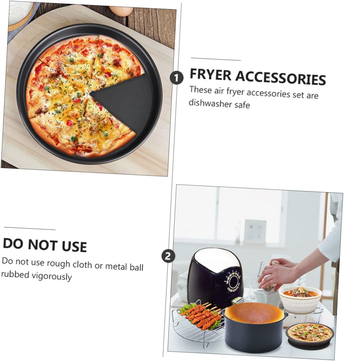 Package List 6 tools Features -Material: Stainless steel Kitchen Tools -Color: Assorted color Pizza Tray - These air fryer accessories set are dishwasher . Do not use rough cloth or metal ball rubbed vigorously Pizza Pan. - Use them to do delicious food for your families and friends, they will like it very much Frying Pan. - With our air fryer accessories, you can cook a wide variety of dishes Air Frying Pan. - Made of material, and for long time use Cooker Tools. - These air fryer accessories are for making chocolate cake, cheese pie, chicken and broccoli casserole, carrot cake, savory biscuits, , etc Air Fryer Accessories.Goods DescriptionStainless Steel Frying Pan Features high temperature resistance, environmental, healthy and reusable.Frying Tools It is easy to use and clean, bring much convenience to you.Kitchen Supplies Made of for long time and use, these kitchen tools set has a simple design, but very in use, giving you a using experience