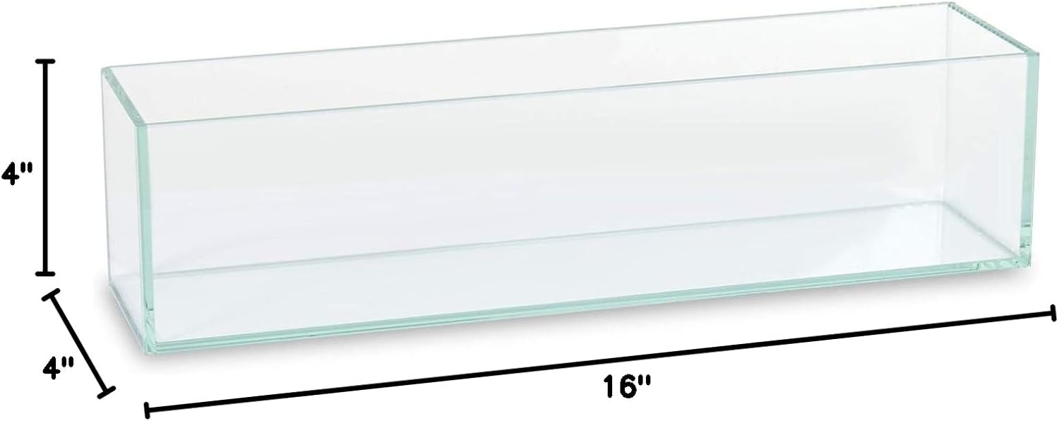 Create stunning centerpieces by filling our crystalline rectangleswith gorgeous floral arrangements, elegant vase fillers, and luminescentcandles! These glass vases are completely versatile and have endless potential.Let your creative juices flow into these watertight vases; you won't have toworry about them leaking out. Our crystal clear rectangles are available ineighteen (18) sizes, leaving you plenty of options to choose from.Measurements:Height: 4"Width: 4"Length: 16"