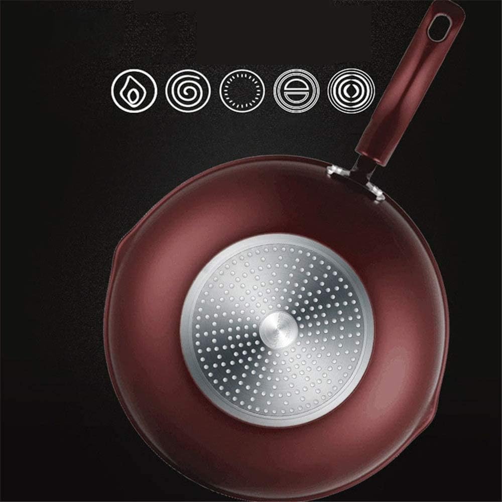 Excellent performance: Designed to stir-fry chopped ingredients with a small amount of oil, as in Chinese and East Asian dishes, the deep, sloping sides of the induction wok create a large cooking surface that cooks quickly and evenly。Comfort and control: A carefully designed, stainless steel handle helps you safely control the wok while on the hob and when moving it around the kitchen。Features: It can also be used for boiling, braising, searing, deep frying and steaming. The 32cm wok is large enough to create wonderful meals for the whole family。Convenience : You can begin cooking on the stove and transfer the pan straight to the oven to finish cooking or keep your food warm. The stainless steel wok is also suitable for all types of hob, including induction, ceramic, halogen, electric and solid plate。The iron pan has tight and pores. When heated, the gas expands to form an air cushion.Reduce the contact area between the food and the pot surface, form a gas suspension, and achieve a trueSelf-etaching non-stick in the sense, outstanding non-stick performance, more suitable for domestic use.Size:32cm FEATURESMaterials: aluminumComfortable handle staysSuitable for induction, electric, gasPackage content: Wok + lid