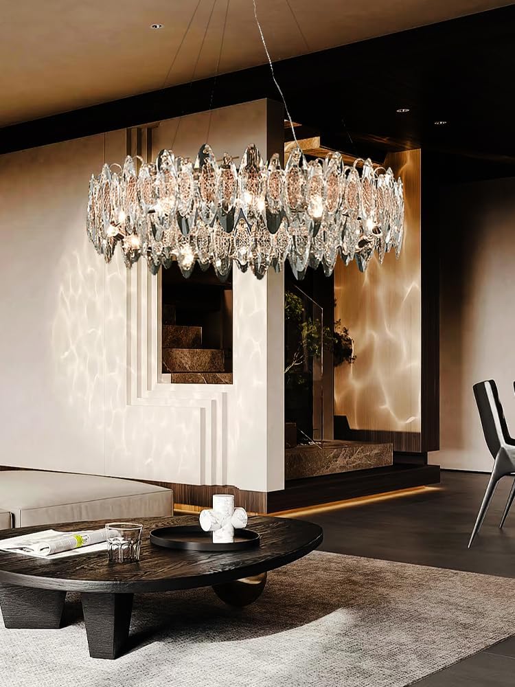 Light Color :Warm Light (3000K) / White Light(6000K) / Natural Light (4500K) / Changeable(3000K-6000K) / Dimmable(3000K-6000K)Specification:Voltage: AC85-265VLight Source: ledMounted Method: suspension typeBody Color:GrayLight color: DimmableMaterial: Metal CrystalApplication:Dining room, living room, bedroom,etc.