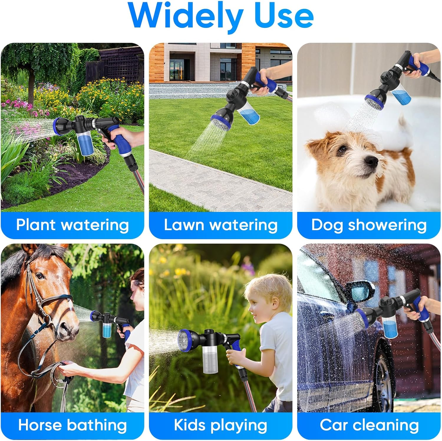 • 【Detachable Jet Dog Bathing Sprayer: 2 Wash Mode- Water and Soap Mode Dog Washer】 Our jet dog bathing sprayer is assembled from dial and controller which means you can use controller to watering without install the bottle! 4 to 8 bars pressure is perfect and suitable for dog bathing use and car cleaning and garden watering use, there are 2 in 1 function to solve your needs, while you can use it as a foam washer and then use it as a watering sprayer to wash dog, Designed for 5 scale to spray different thickness of foam. Durable and handy for use. There is no leakage. 100 ml of HDPE body can provide a long-lasting use