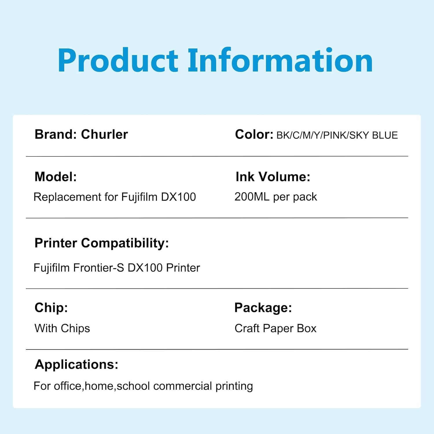 1.For DX 100 ink:Compatible with Fujifilm Frontier-S DX100 Printer.