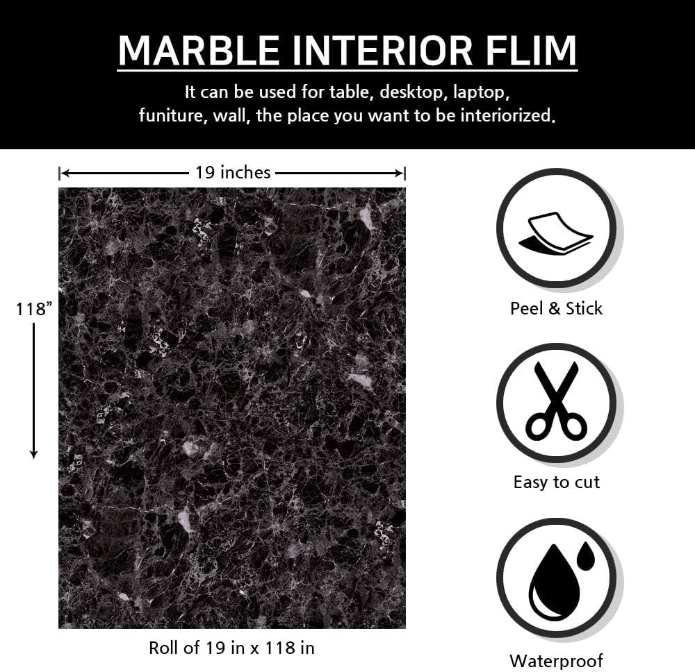 "◈ Change the old space to refined marble pattern. ◈ Easy to apply by oneself. Easily cut it too. ◈ This marble pattern contact paper can customized space you want to be interiorized. . ◈ size : 19.6 inch wide x 118 inch long ◈ Material : PVC ◈ Package Included : One Roll◈ How to use Step 1 : It can be placed on any smooth clean and dry surface It is best applied at room temperature. Step 2 : Measure the surface to cover. Cut the film into right size, leaving about 1 inch extra overlap on all edges is better. Step 3 : Peel off the backing paper evenly with one hand whilst smoothing the film to the surface. With your other hand, from the center to edges. For this it's better to use a soft cloth. (Do not peel all the backing all at once, peel off a few inches at a time, slowly stick it to the floor) Step 4 : Creases and air bubbles can be removed by applying light pressure from the center to the edges. ◈ Note 1. Color tones can vary due to lighting in the room, pictures on wall for reference only. 2. Buy enough rolls at a time to make sure they come from the same batch to avoid color difference. 3. Please allow 1 inch deviation as they are manual cutting 4. Wallpaper you will receive may have some wrinkles on it or both ends, but it do not effect looking after use on dry flat surface. "