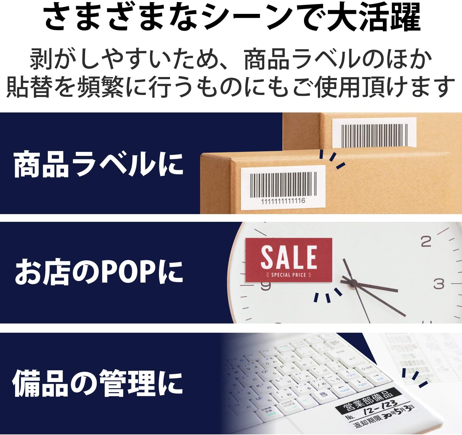 Peel and stick labels with no sticky residue. Amazon FBA recommended label size makes it the perfect product or logistics label. Multi-type labels for inkjet printers, lasers, copiers, and even handwriting. One side size: 66.0 mm x 33.9 mm Label Quantity: 2,400 sheets *24 sides x 100 sheets Paper Type: Multi-Printed Paper