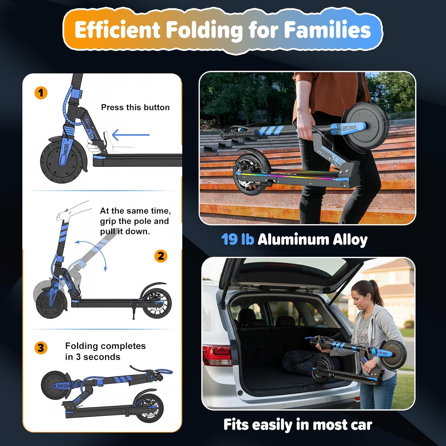 | Other Special Features of the Product | Adjustable Handlebar Height, Dual Braking System, Foldable, Lightweight, Replaceable Battery |