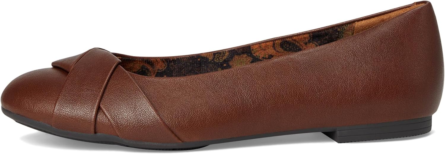 round toe, ballet flat, folded upper accent, lightweight, padded sock, flexible outsole