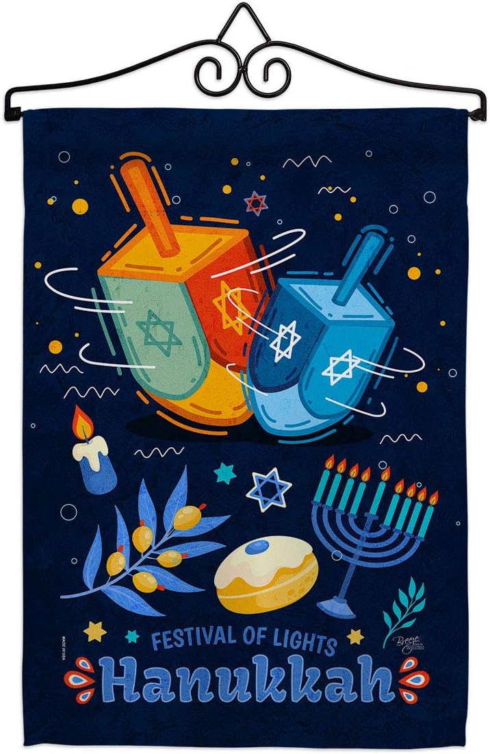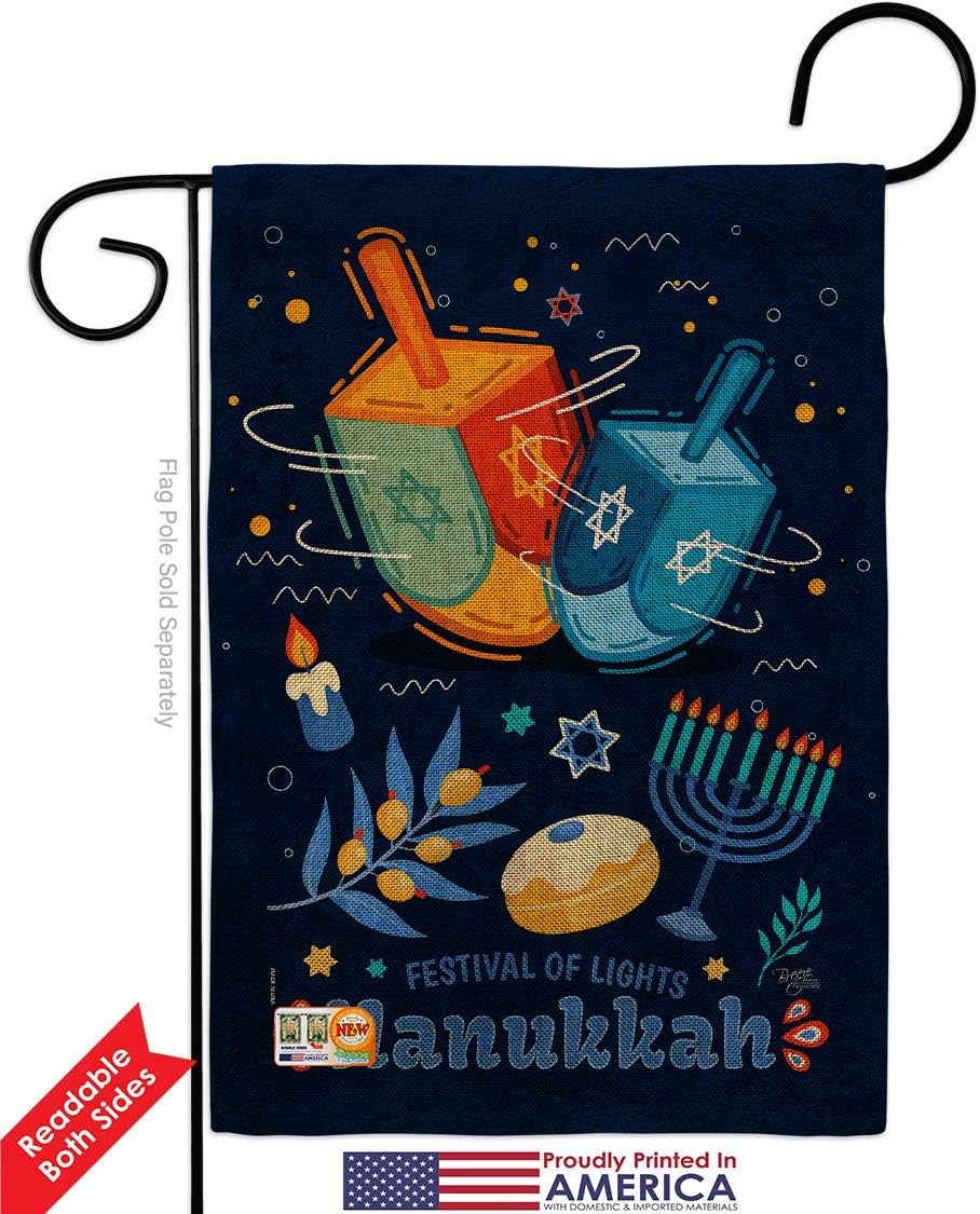 Hanukkah Beautiful Mini Garden FlagBreeze Decor have variety of Garden Flag for all occasions. Uniquely design for hanging indoor or outdoor use. We are committed to offering you exceptional values. Our customers enjoy displaying our Garden Flag for longer periods. Specification: Theme: Hanukkah Size: Garden Flag 13" x 18.5" Print: Double-Sided Readable: Readable Both Sides Material: Weather Resistant Double Burlap Stitching: Double Stitched Display: Vertical Hang Type: Sleeve Artist: Schal Lee Special Features: Origin: Made In USAPackage Include: 1 pc x Garden Flag 13" x 18.5" Package Decorative FlagsFor more than a decade, we’ve been dedicated to manufacturing flags with no comparison in quality and beautiful designs. Our flags are made with our Pro Guard material that is soft to the touch and designs can be read correctly on the flag. A feature that our customers will love. We are committed to using eco-friendly inks that won’t leave a foot print in our environment. MPN: BD-HK-G-114228-IP-DB-D-US20-BD 14228 64228