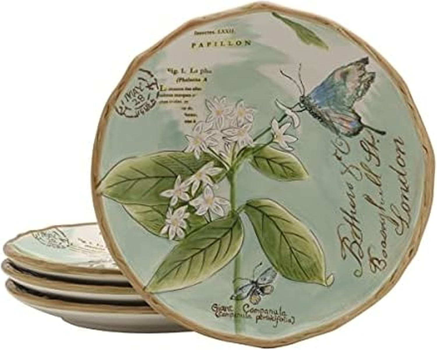 Take a look into nature's sketchbook at the Toulouse Collection featuring soft muted shades of blues, greens and taupes with a hand thrown textured look of solid color pottery with spontaneous glaze and debossing. Inspired from preserving nature's gifts of a friendly garden with song birds and butterflies and handwritings from old Europe with a feeling of eternal spring, this group will enhance any table.