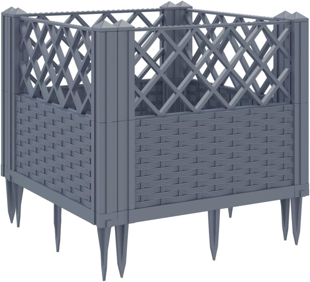 Grow your own vegetables, herbs or simply decorative flowers in this practical and durable garden planter. Durable material: Polypropylene is a popular plastic material, and is also one of the most widely used for outdoor furniture. It is lightweight, sturdy and impact resistant.Large capacity: The outdoor planter provides plenty of space for growing your vegetables, flowers and other plants.Modular design: This planter consists of 4 panels that can be freely combined. You can simply transform it from a raised planter to a garden fence according to your needs.Gorgeous rattan look: The garden planter is designed with a rattan look that gives an elegant charm to your living space.Color:GreyMaterial:(Polypropylene)Size:43.5 x 43.5 x 43.5 cm (L x W x H)Ground spike height: 11.5 cmLower base not IncludedAssembly required: yesPackage Quantity:1