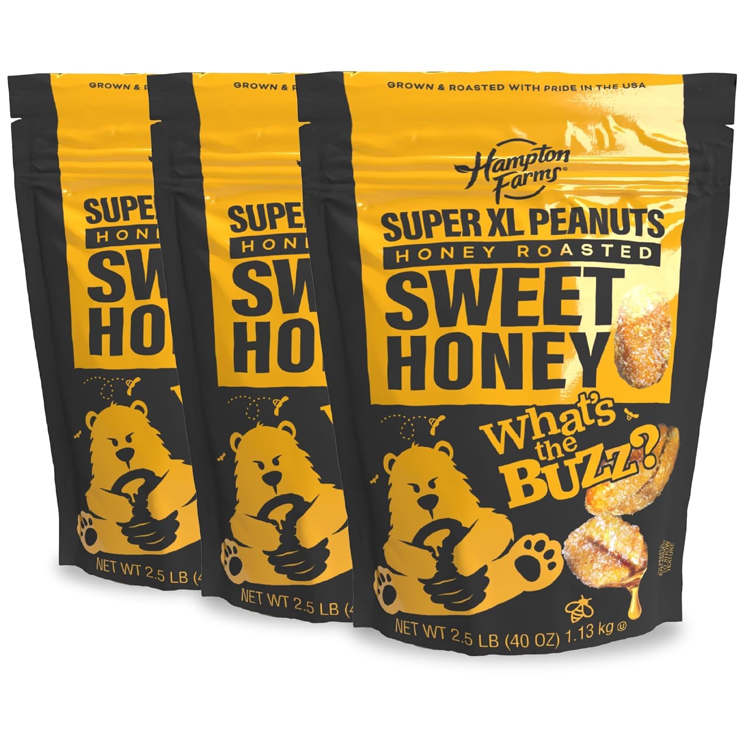 Indulge in irresistible sweet-salty satisfaction with Hampton Farms Super Extra-Large Sweet Honey Roasted Peanuts. Crafted from premium, extra-large peanuts and coated in a golden honey glaze, these crunchy bites deliver the perfect balance of sweetness, saltiness, and roasted nuttiness.