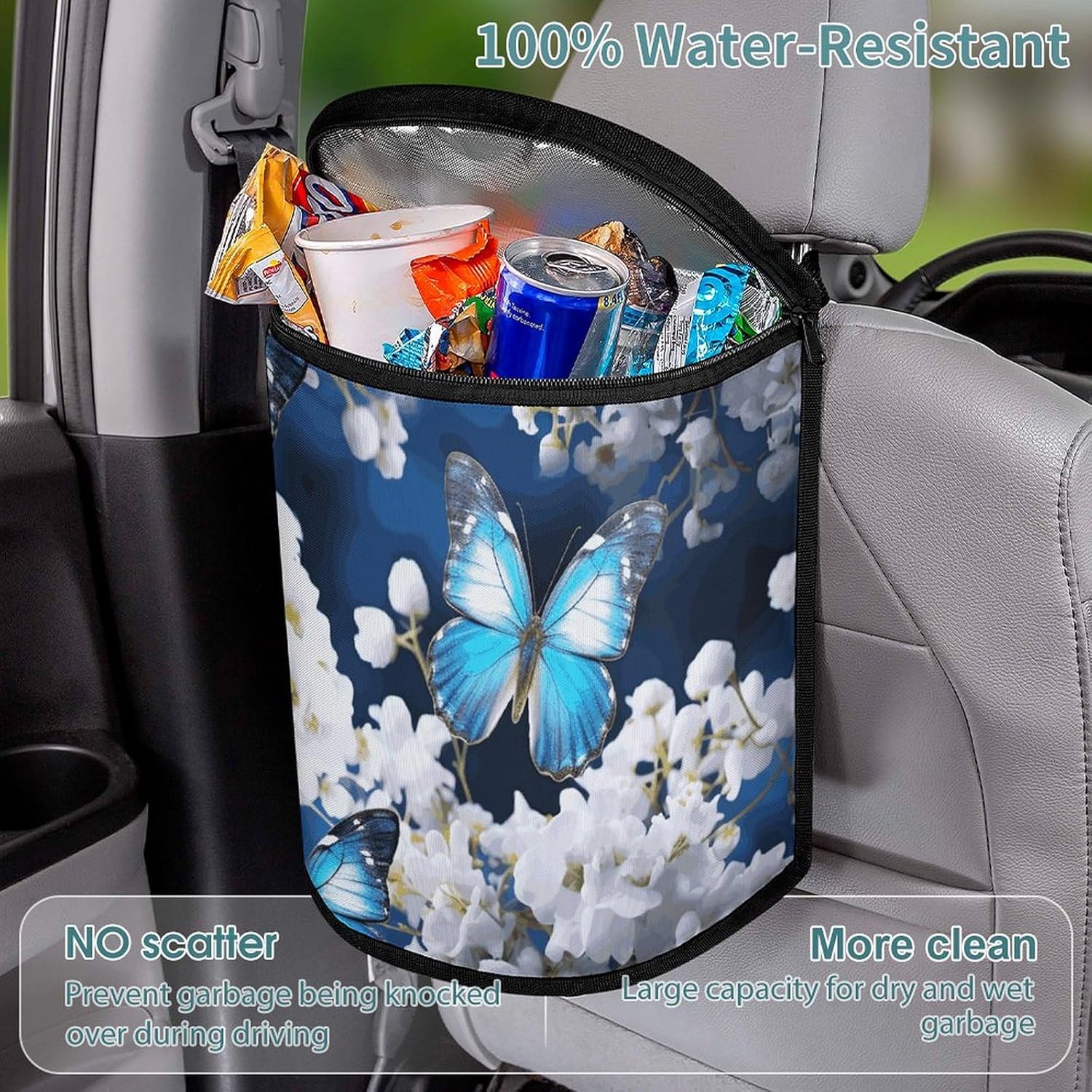 This stylish garbage bag storage bag features a built-in waterproof and leak-proof lining,effectively protecting the trash can and your car from beverage and grease stainsThe appearance design of car trash cans with lids is becoming more and more beautiful and fashionable. It is not only practical, but also adds a sense of decoration to the car
