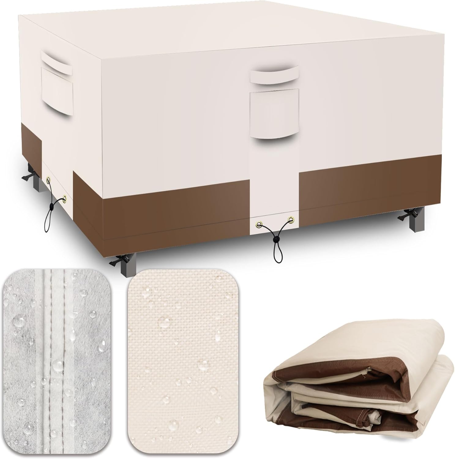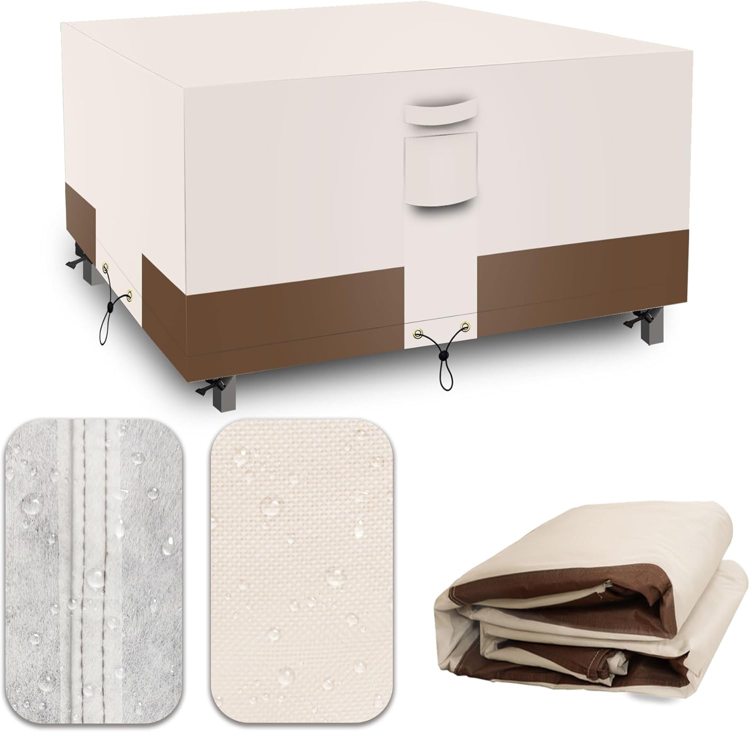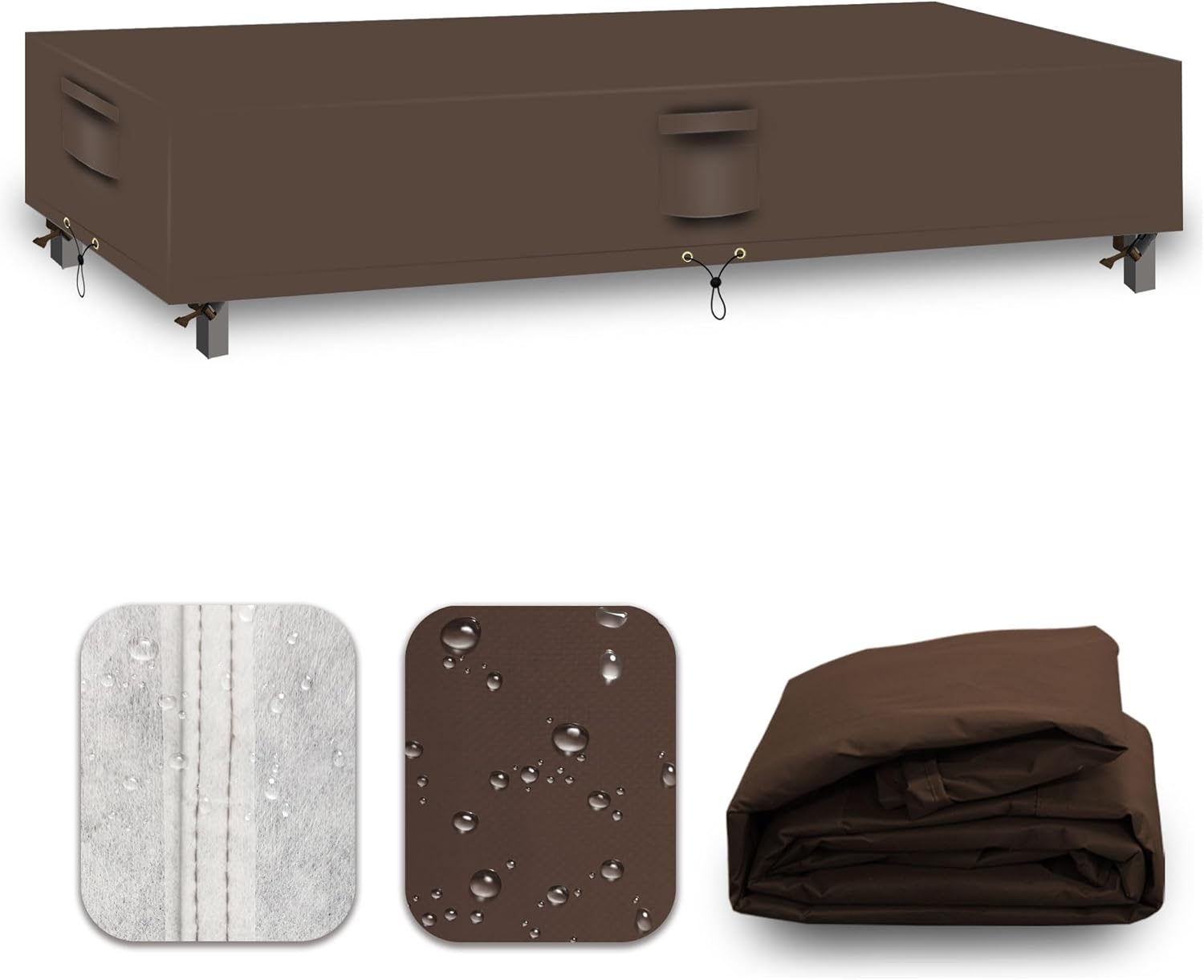 Heavy Duty Patio Furniture Covers Waterproof, 600D Outdoor Furniture Cover Waterproof for Sectional Sofa Couch, Outdoor Dining Table and Chair Set Covers 138''L x 102''W x 32''H, Beige Brown