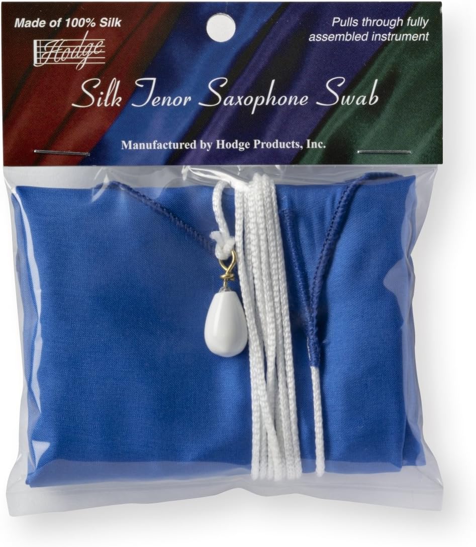 Hodge Silk Swabs are premium swabs made from 100 percent silk for removing moisture from woodwind instruments after each use. Hodge uses silk because it is absorbent, lint-free and compressible. The swabs are large enough to wick the moisture out of the larger part of the bore, but compressible enough to pull through the neck. They pull through the fully assembled instrument. They do not leave lint in the keys. They are not stored inside the instrument so the moisture does not remain. Hodge swabs are regularly recommended by repairmen for optimum care of your instrument. The silk saxophone swabs are designed to go all the way through the fully assembled saxophone. There is no need to remove the neck or carry a separate swab for the neck. This is a great convenience. The tenor saxophone swabs are designed the same as the alto saxophone swabs, but with a longer cord and heavier weight.