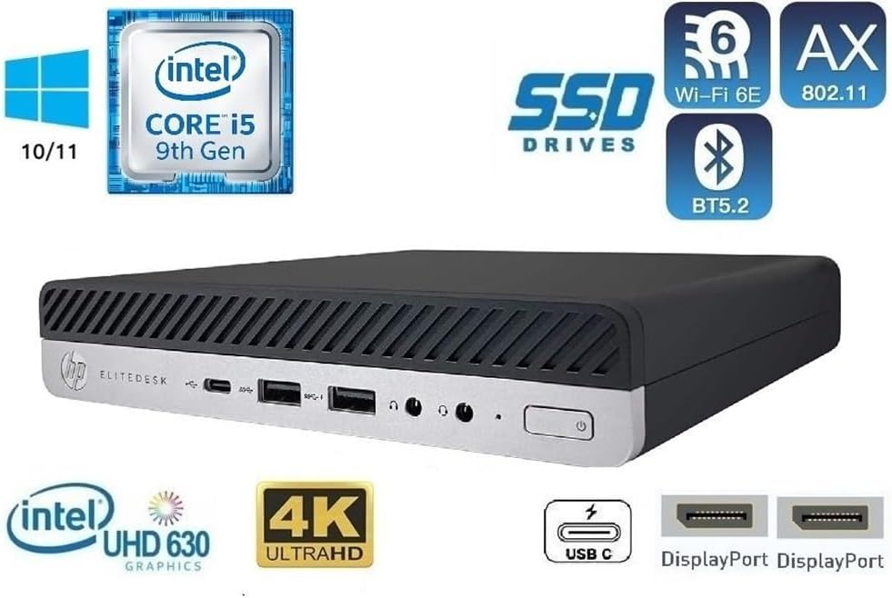 Product Specifications: Brand: HP EliteDesk 800 G5Processor: Intel Core i5-9500T 6-Core (up to 3.70 GHz) Memory & Storage: 16GB DDR4 Memory, 512GB NVMe SSD Operating System: Windows 11 Pro-64 Components: Wireless Mouse and KeyboardWiFi: Yes Bluetooth: Yes Form/Style: mini Ports/Slots: USB Type-A x6 USB 3.1 Gen 2 x1 Type-C x1 HDMI x1 Line-in/Microphone connector x 1Speaker/Headphone connector x 1Display port Connector x 2 Serial port x 1 Ethernet port x 1 Ultra-slim Cable Lock x 1 Power cord connector x 1