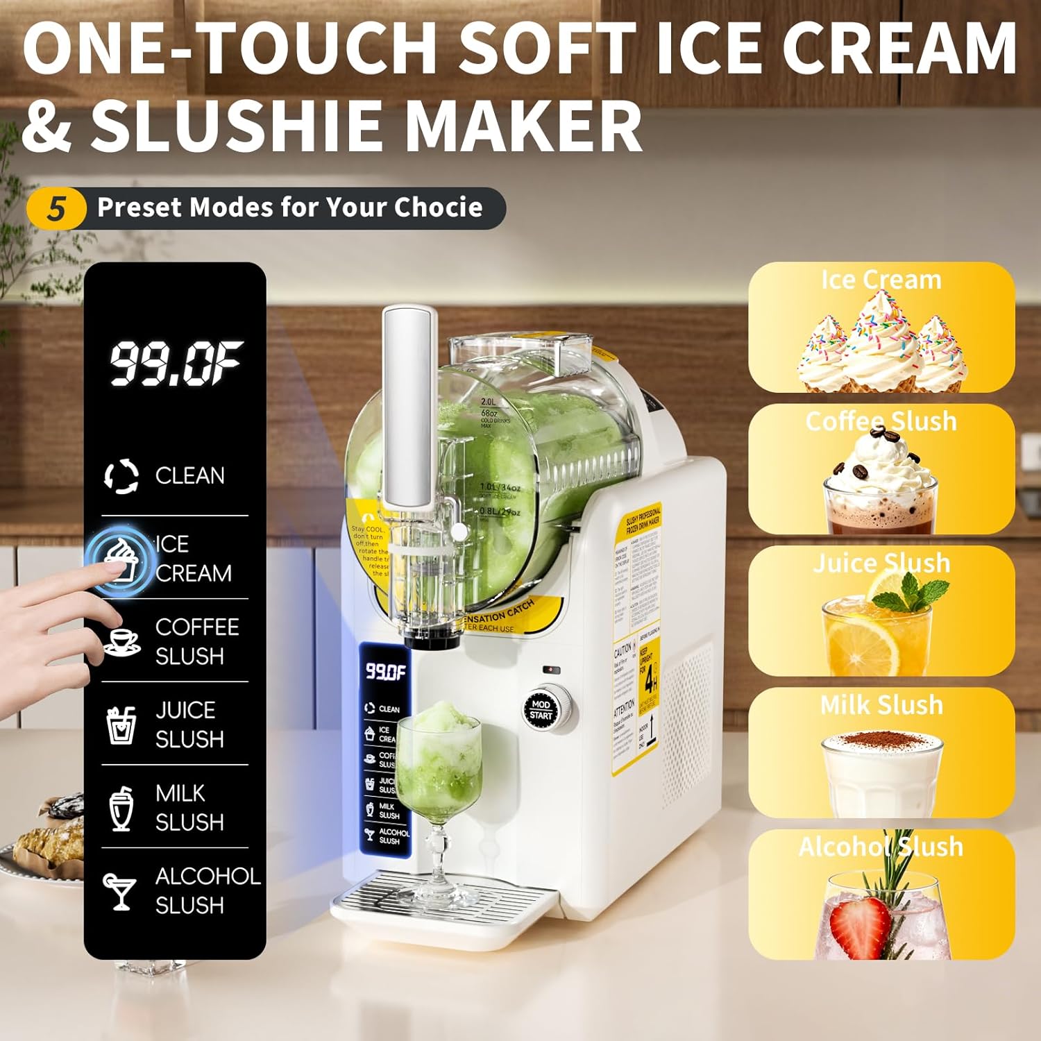 Ice Cream Machine Frozen Drink Maker, Slushie Machine for Home - Slushy Machine Maker No Ice Needed Self Cleaning, 5 Preset for Soft Serve Ice Cream, Slushie, Margarita, Frappรฉs, Milkshake